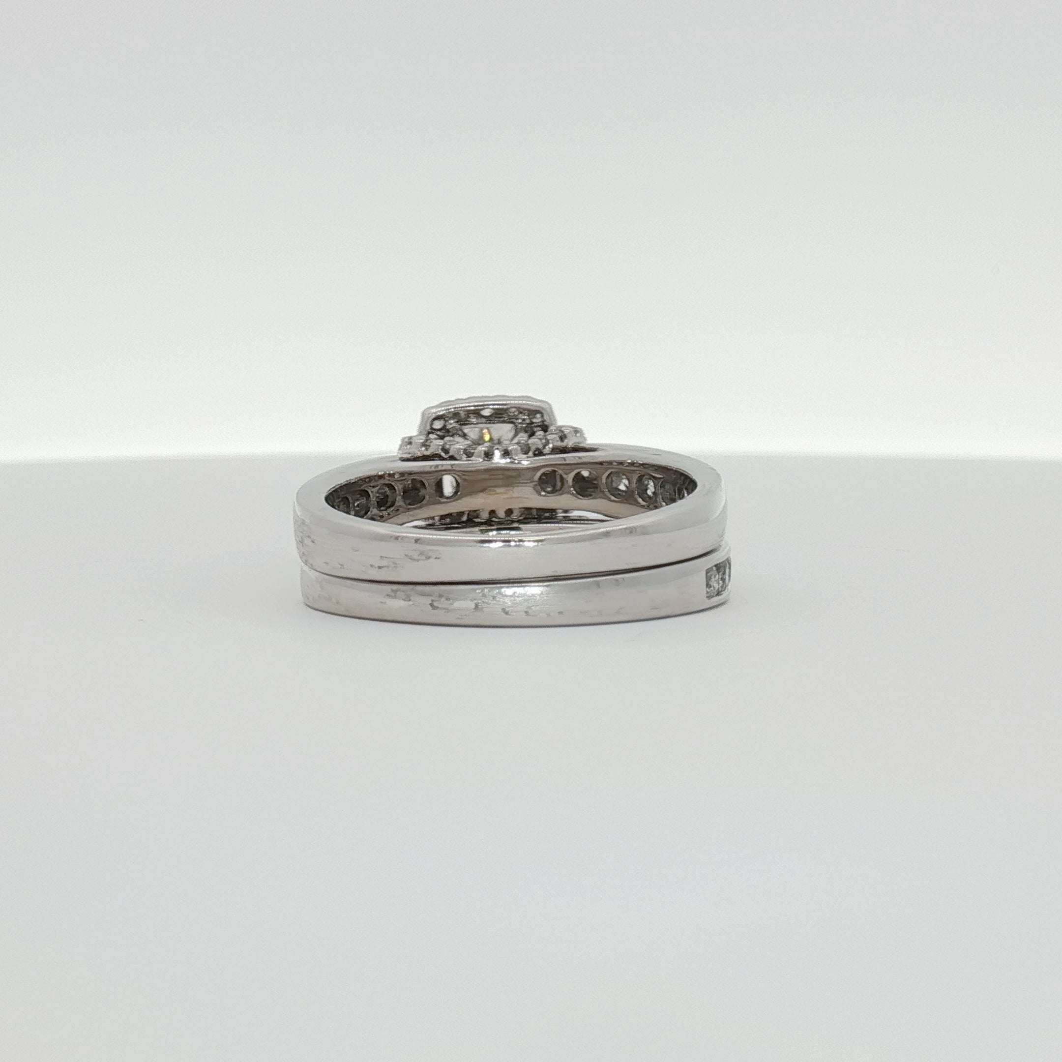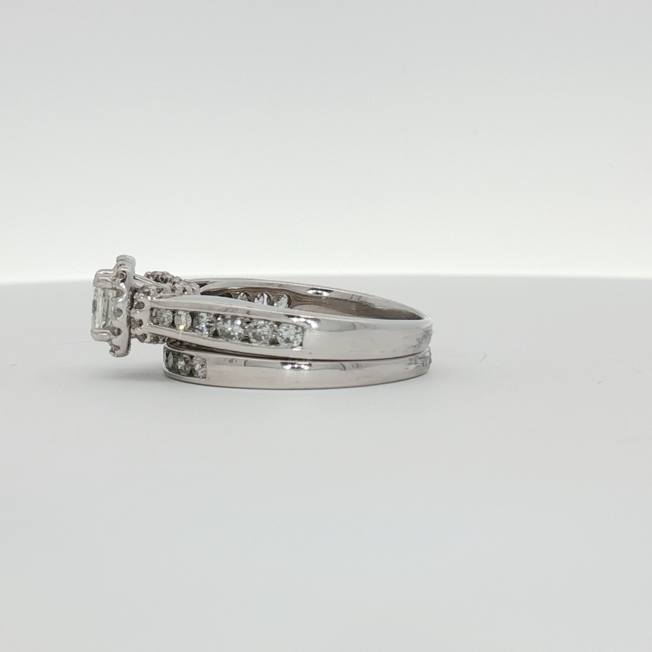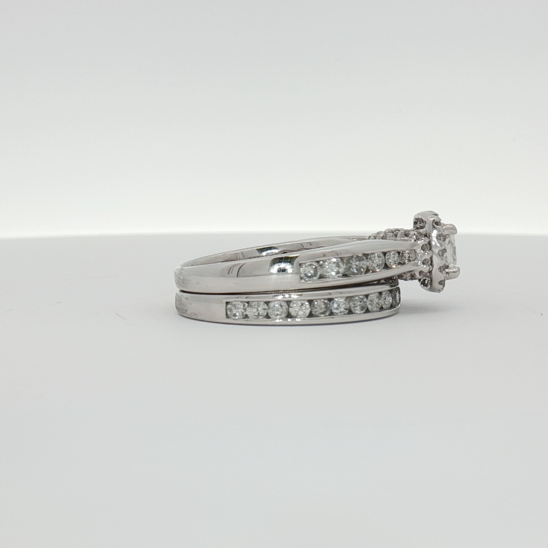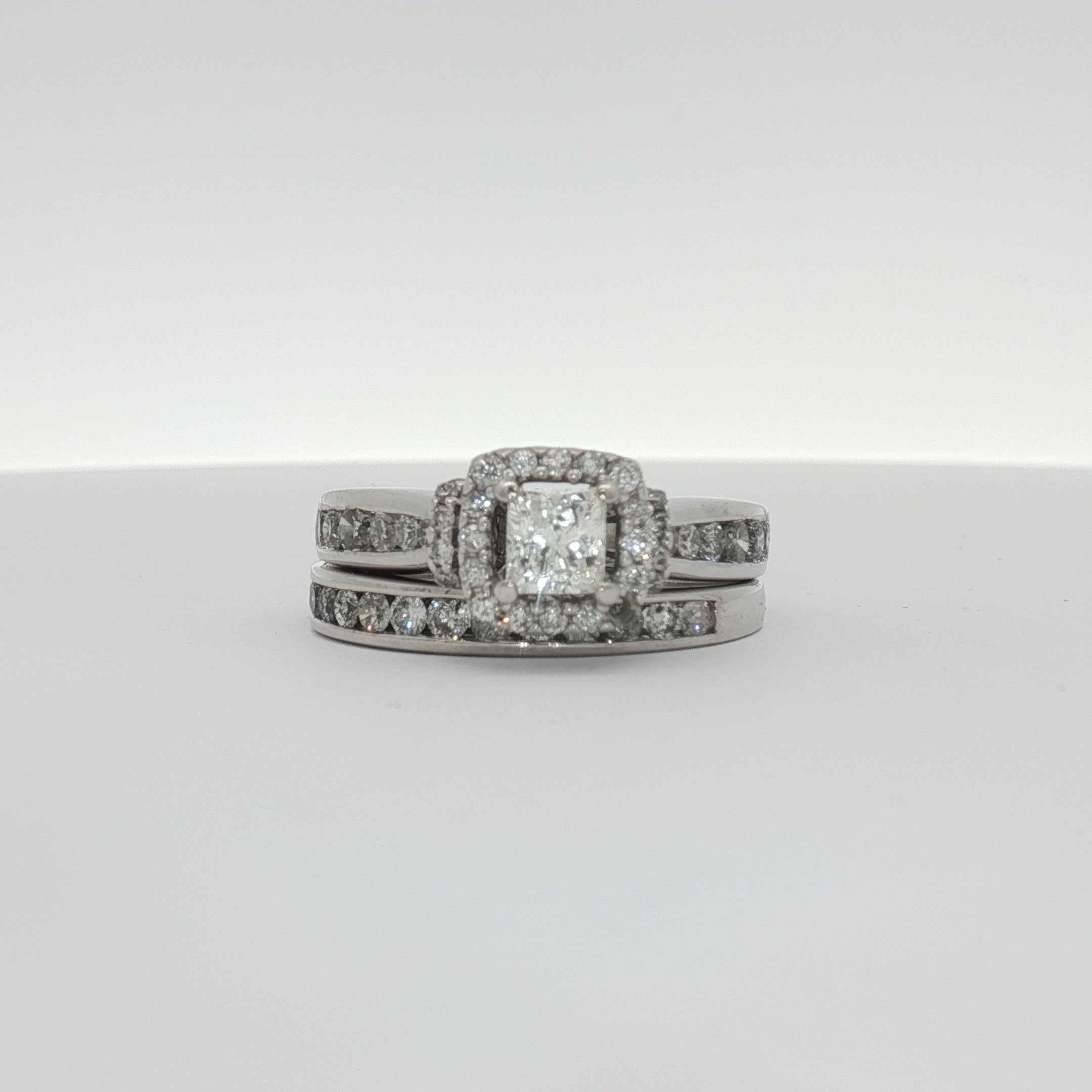 14K White Gold Diamond Cluster Engagement Ring & Wedding Band Set | Coordinated Halo & Channel Design | Size 7