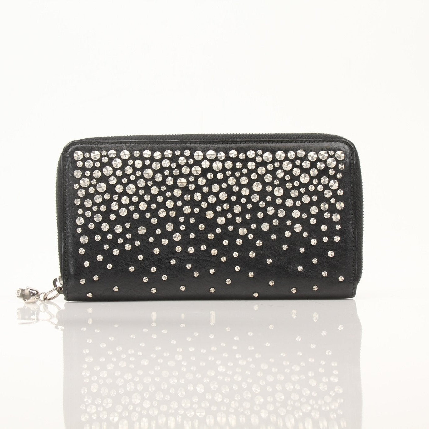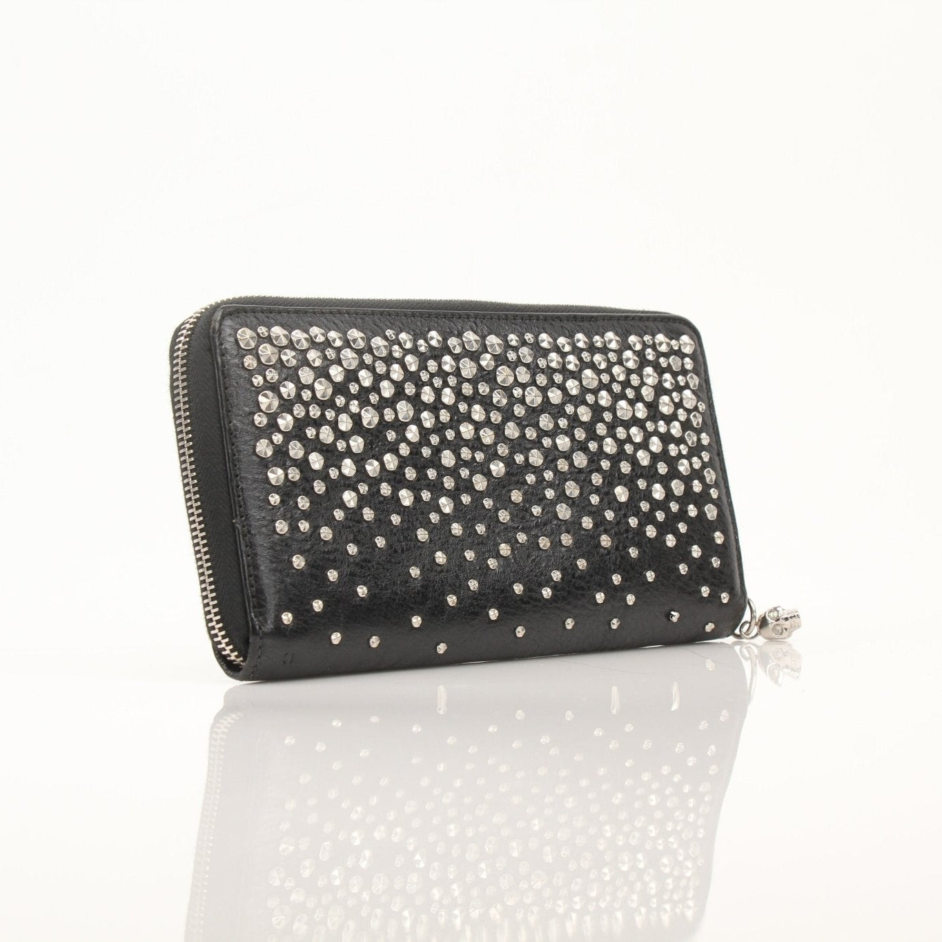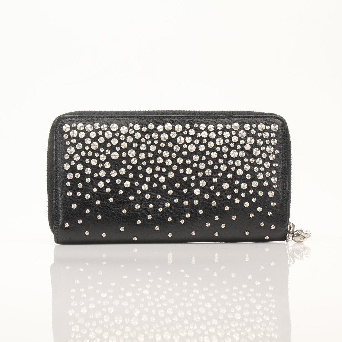 Alexander McQueen Black Studded Skull Zip Wallet