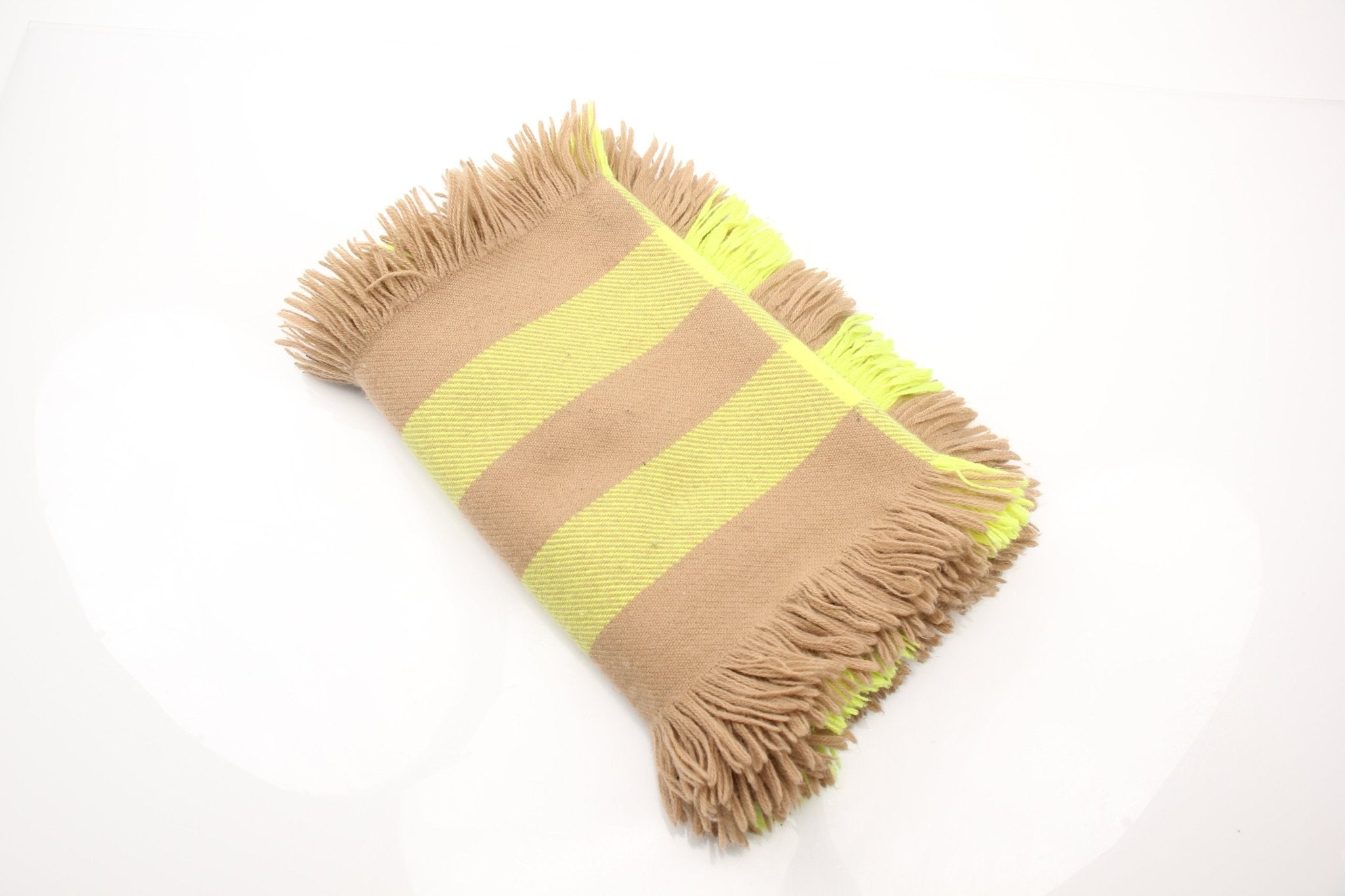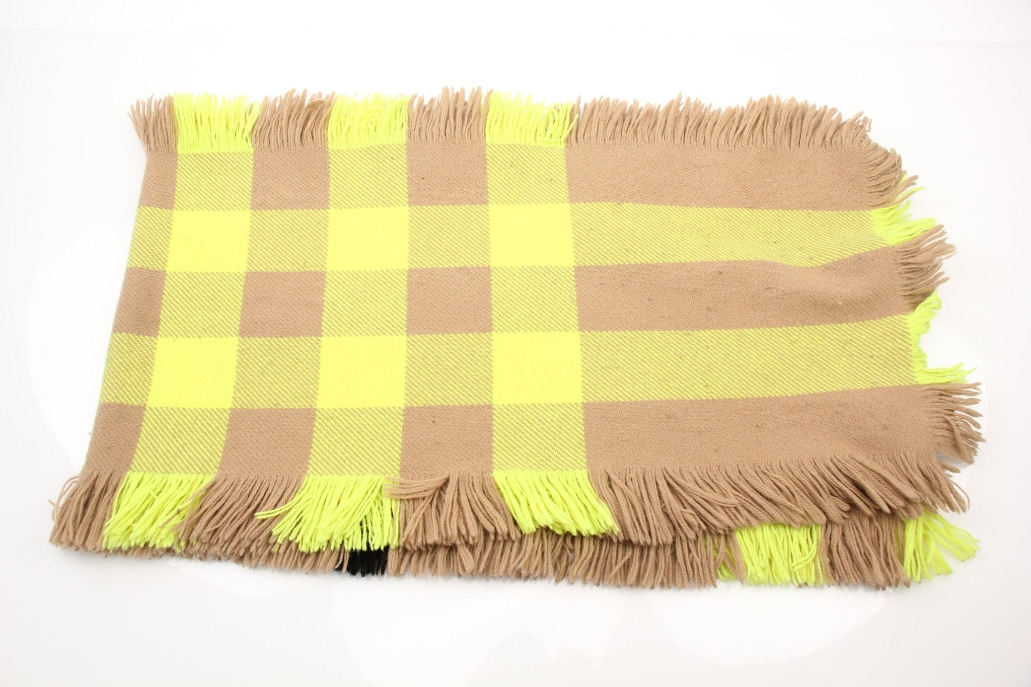 Burberry London England Camel & Neon Check Fringe Scarf