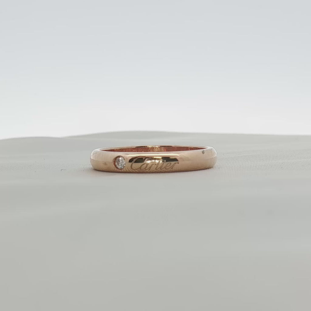 This timeless Cartier Love wedding band is crafted in luminous 18K rose gold and accented with a single round brilliant diamond. A refined expression of the iconic Love collection, the smooth polished band and signature engraving reflect Cartier’s legacy of understated luxury and enduring design. Elegant on its own or stacked, this piece is a sophisticated symbol of commitment and style.