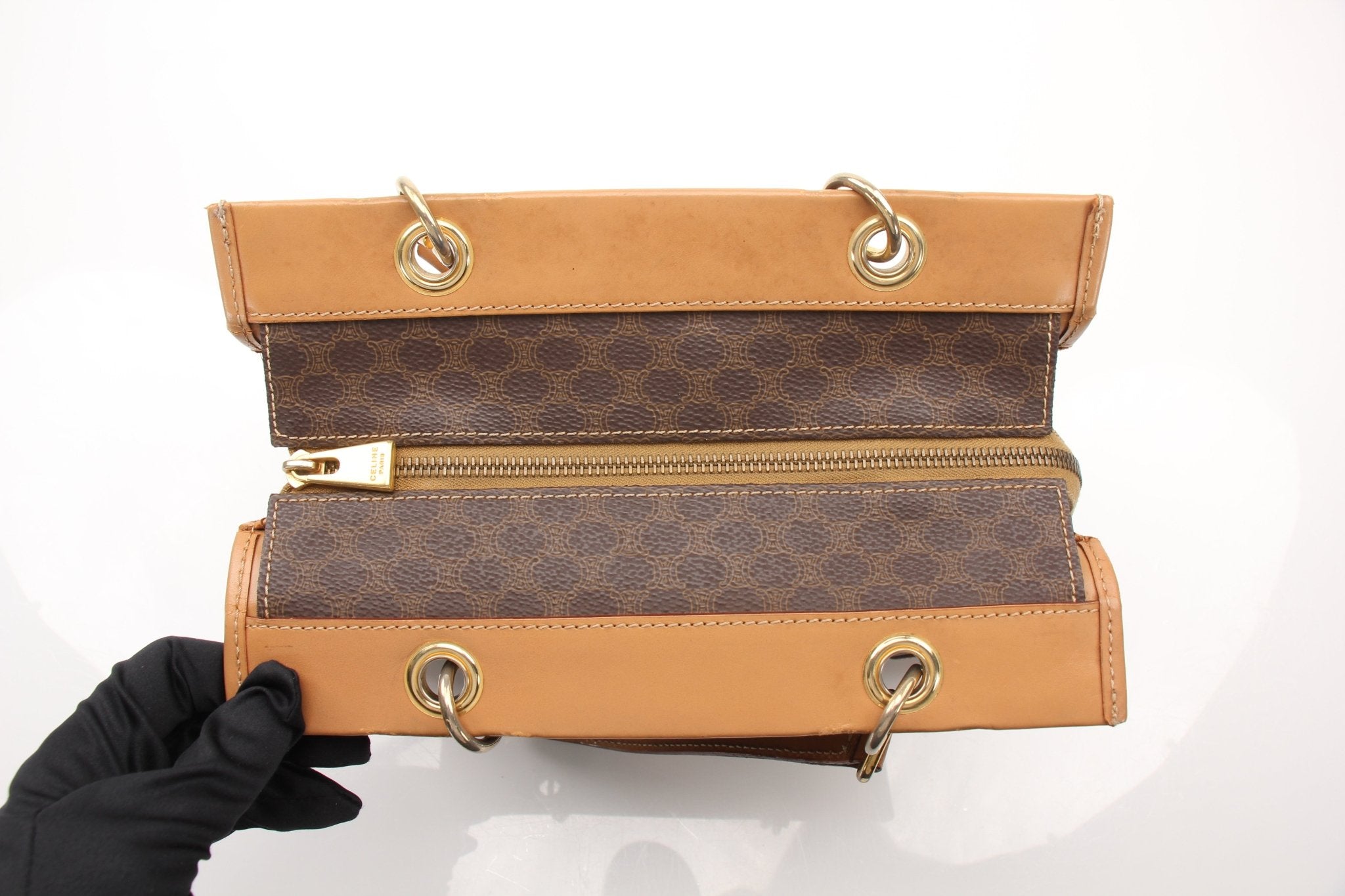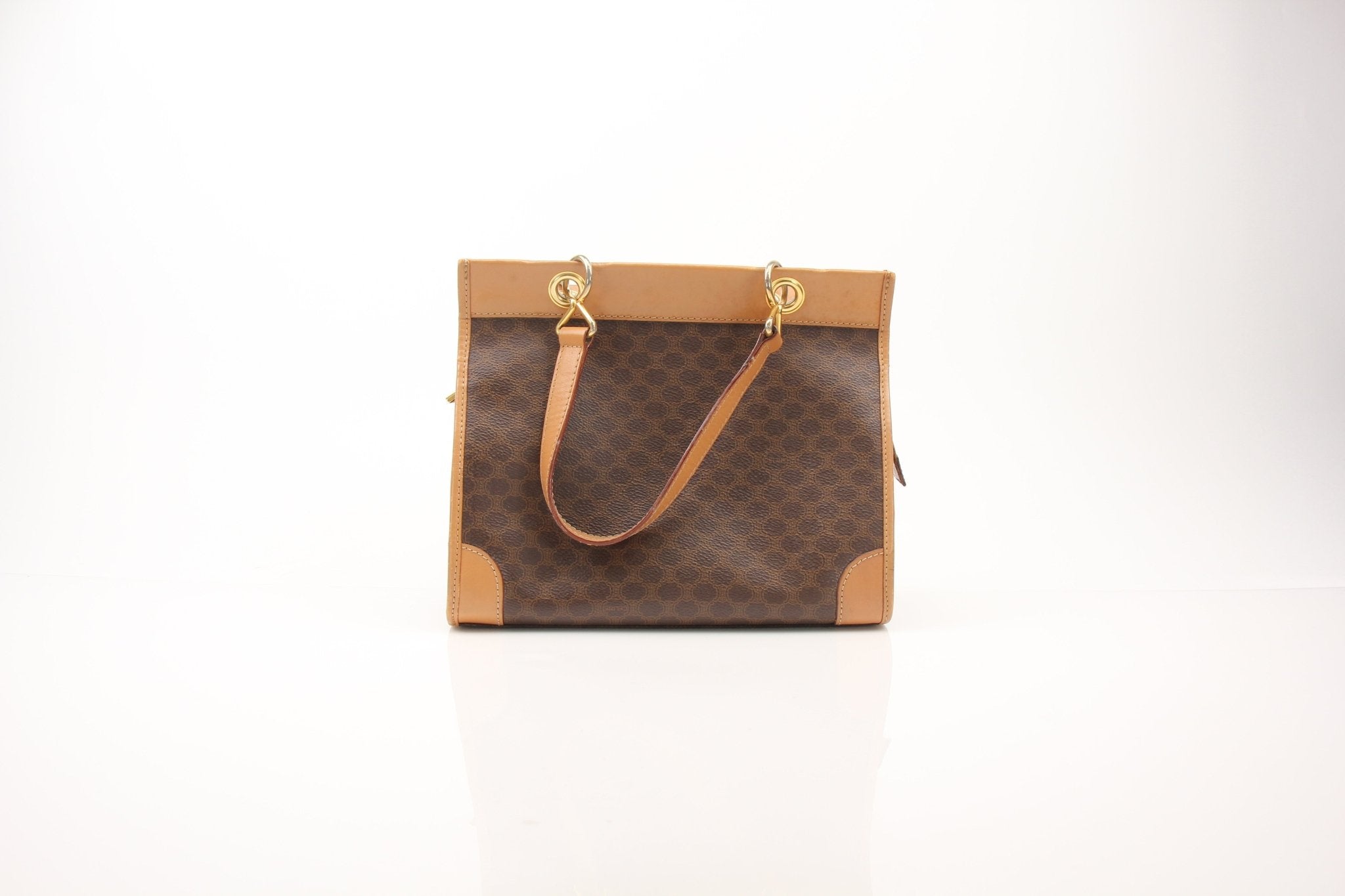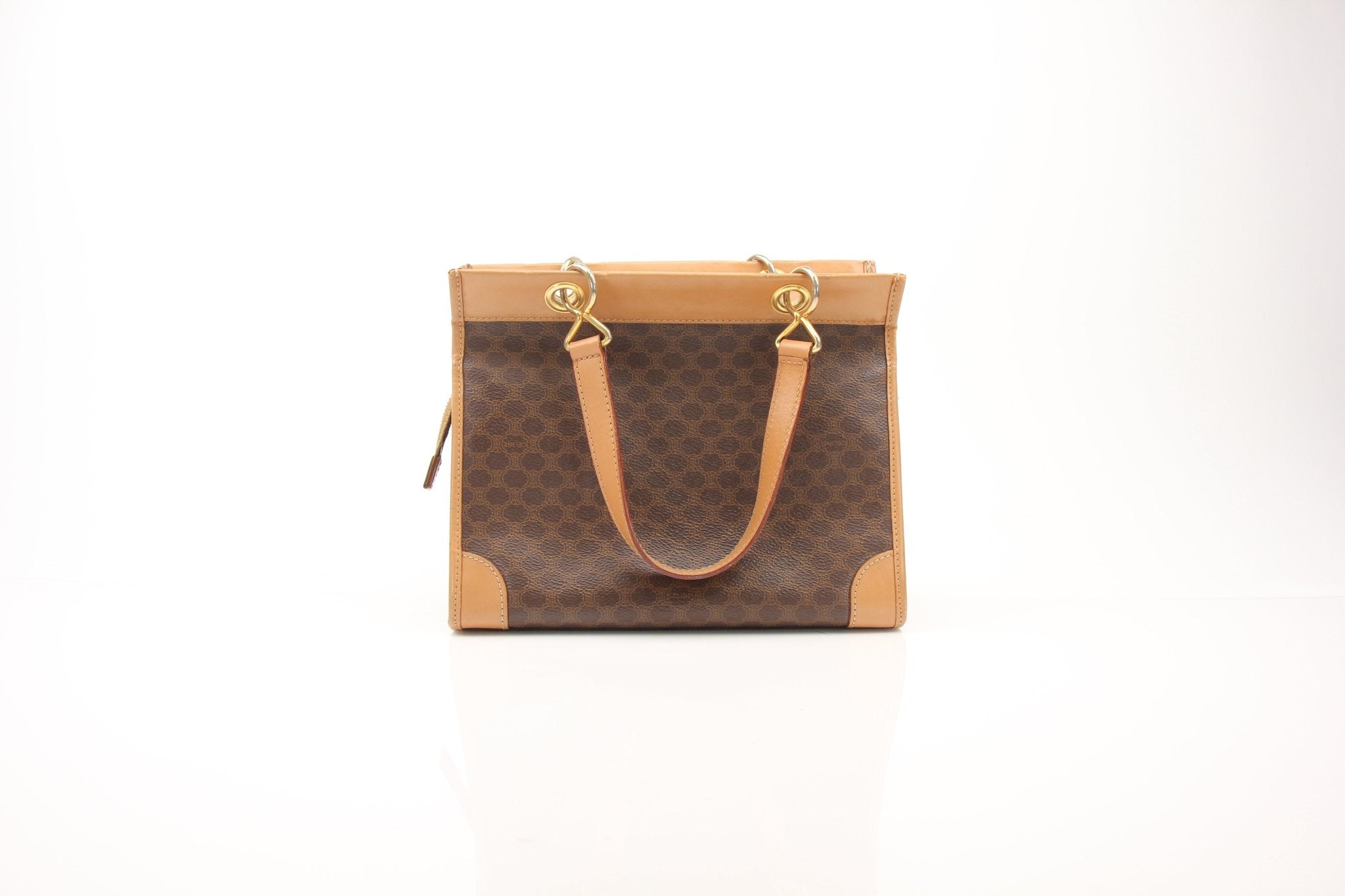 A timeless expression of vintage Celine craftsmanship, this Macadam PVC tote blends the house’s iconic monogram canvas with warm tan leather trim and polished gold-tone hardware. The structured silhouette and refined detailing offer effortless sophistication, while the spacious zip-top interior ensures everyday practicality. A classic investment piece that transitions seamlessly from day to evening.