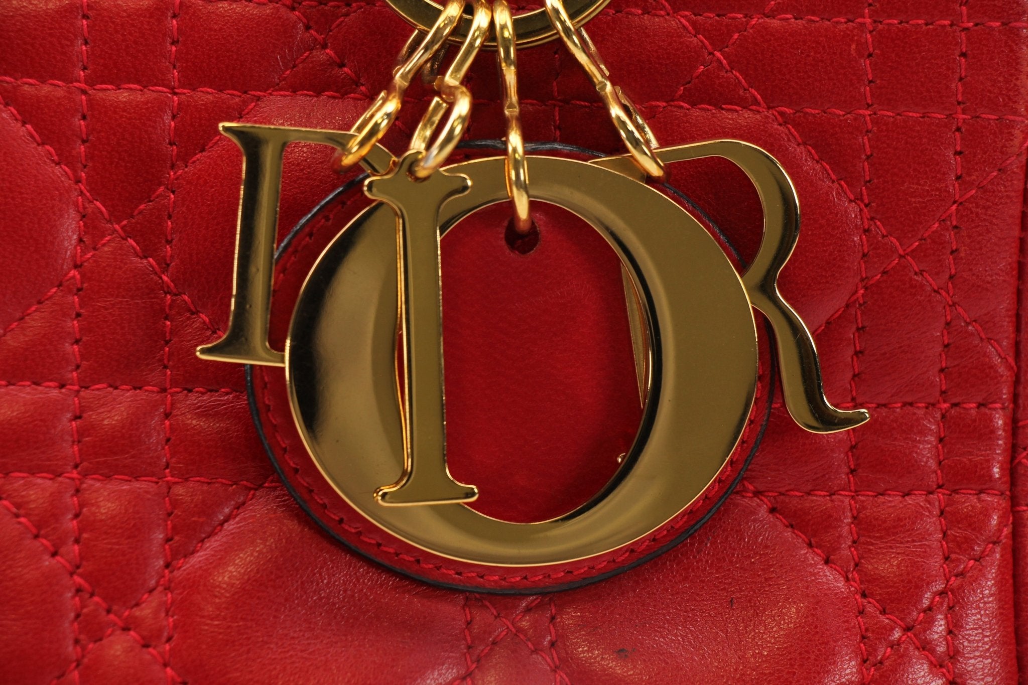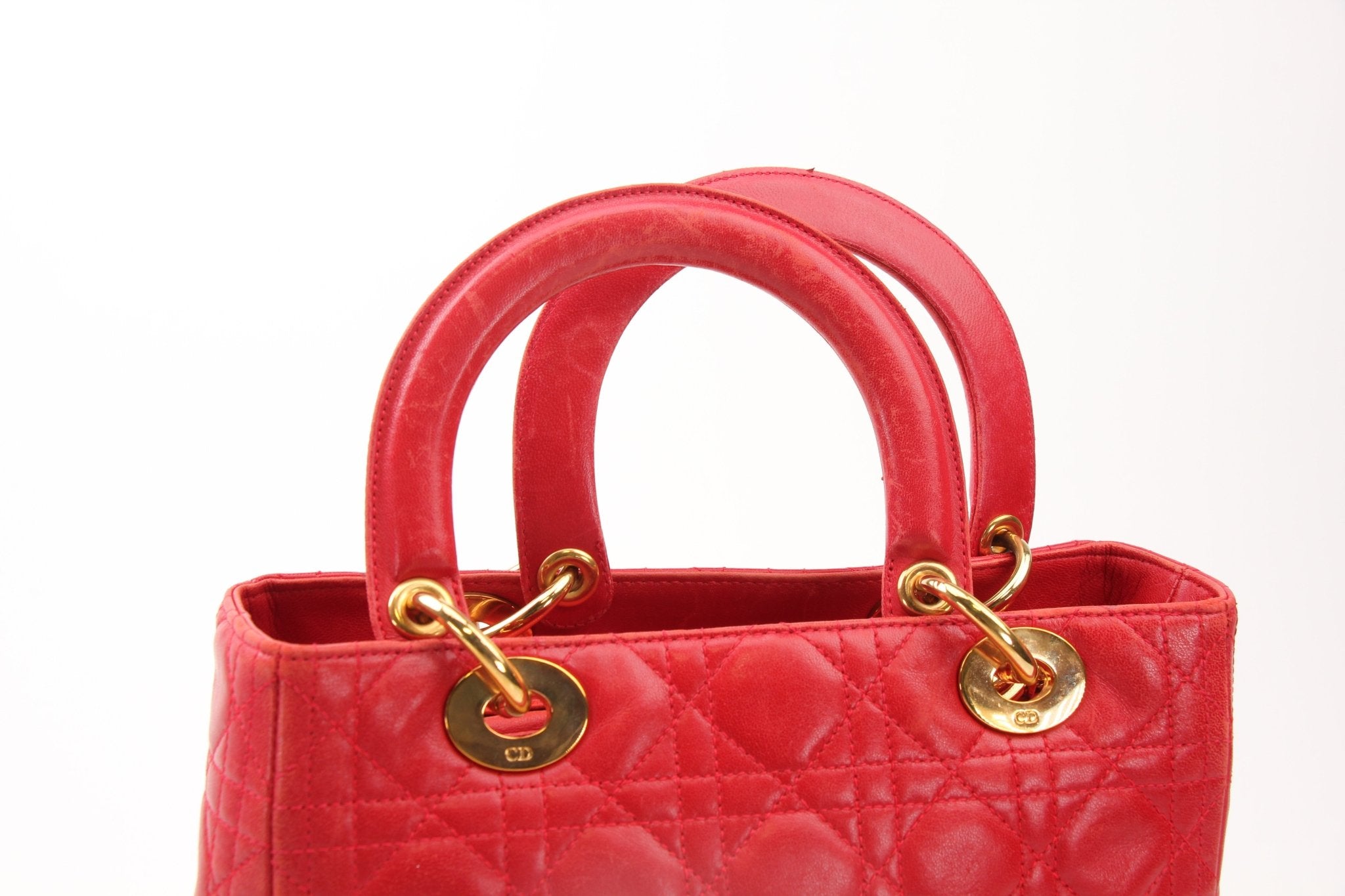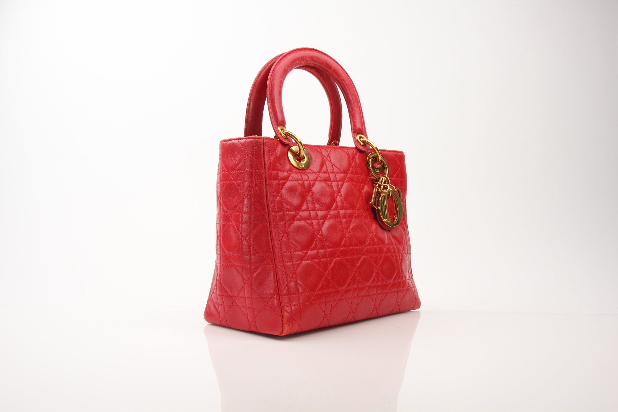 Christian Dior Lady Dior Red Cannage Calfskin Handbag