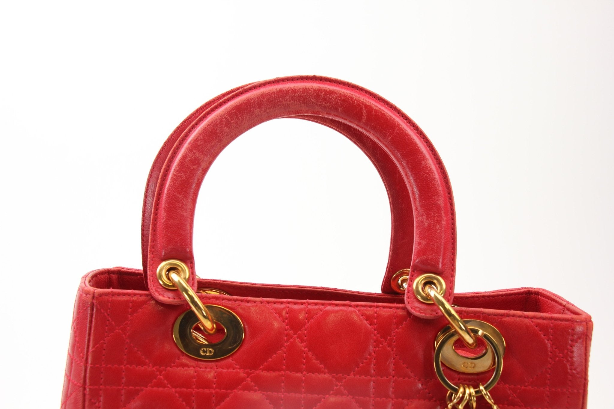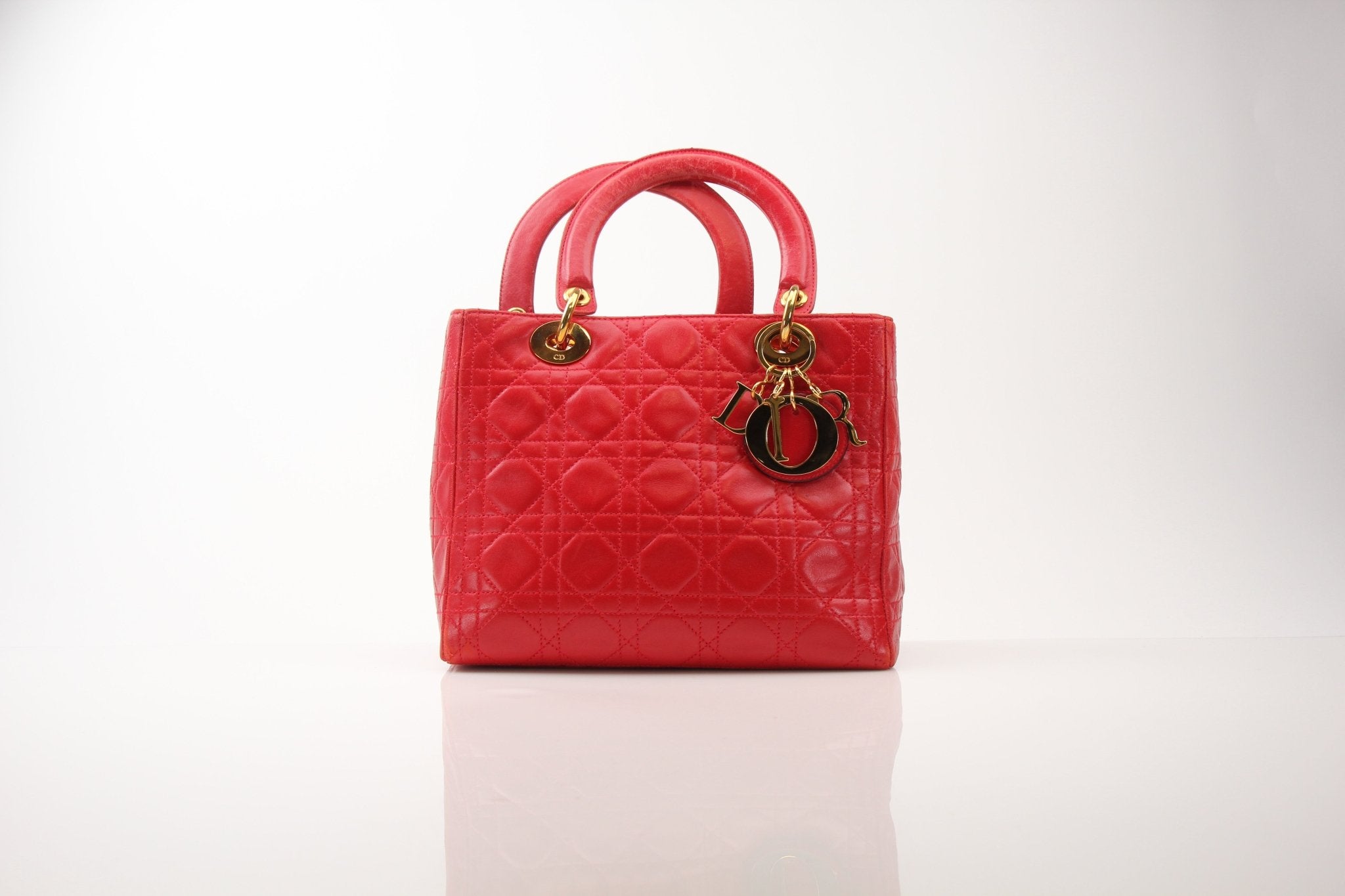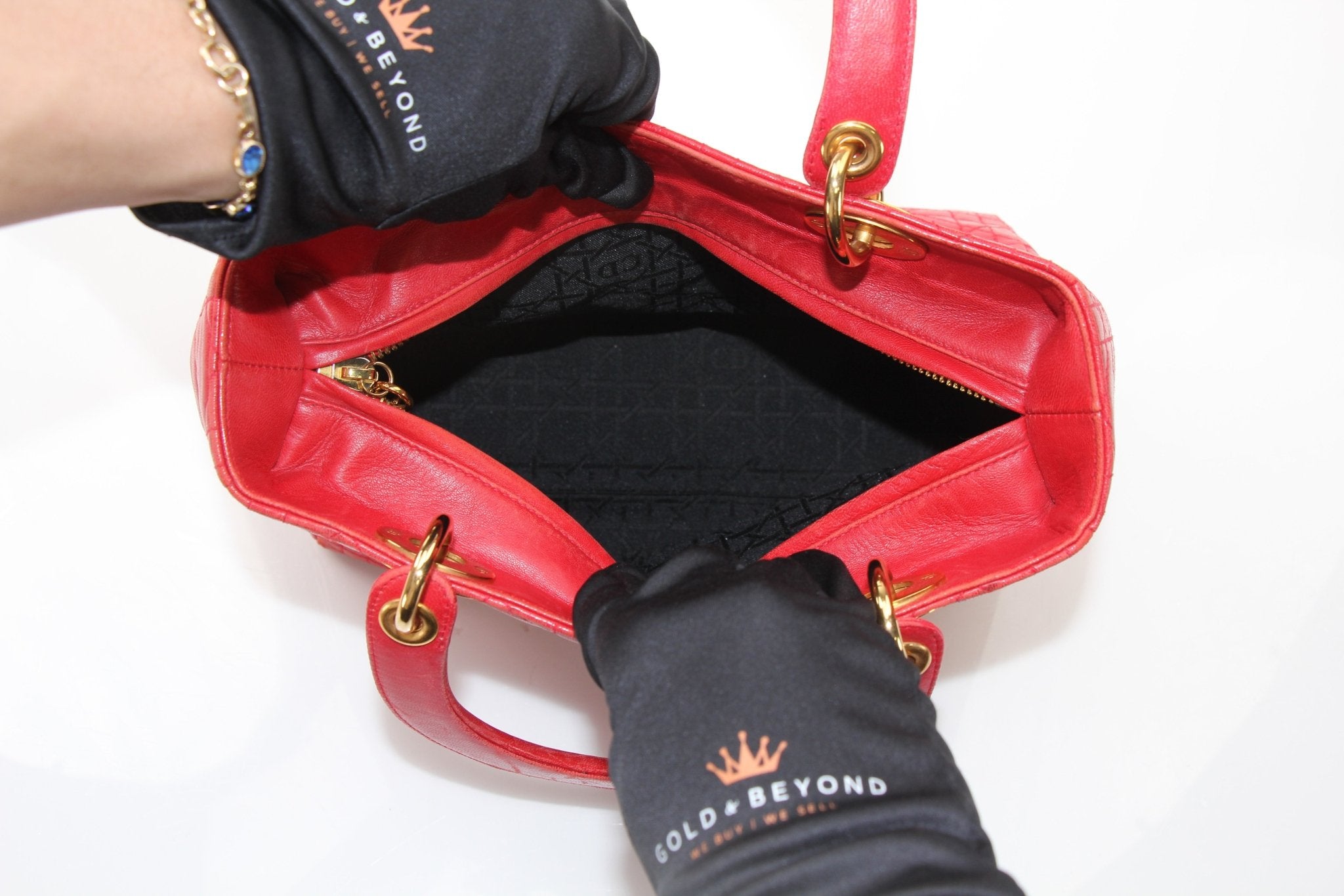 Christian Dior Lady Dior Red Cannage Calfskin Handbag