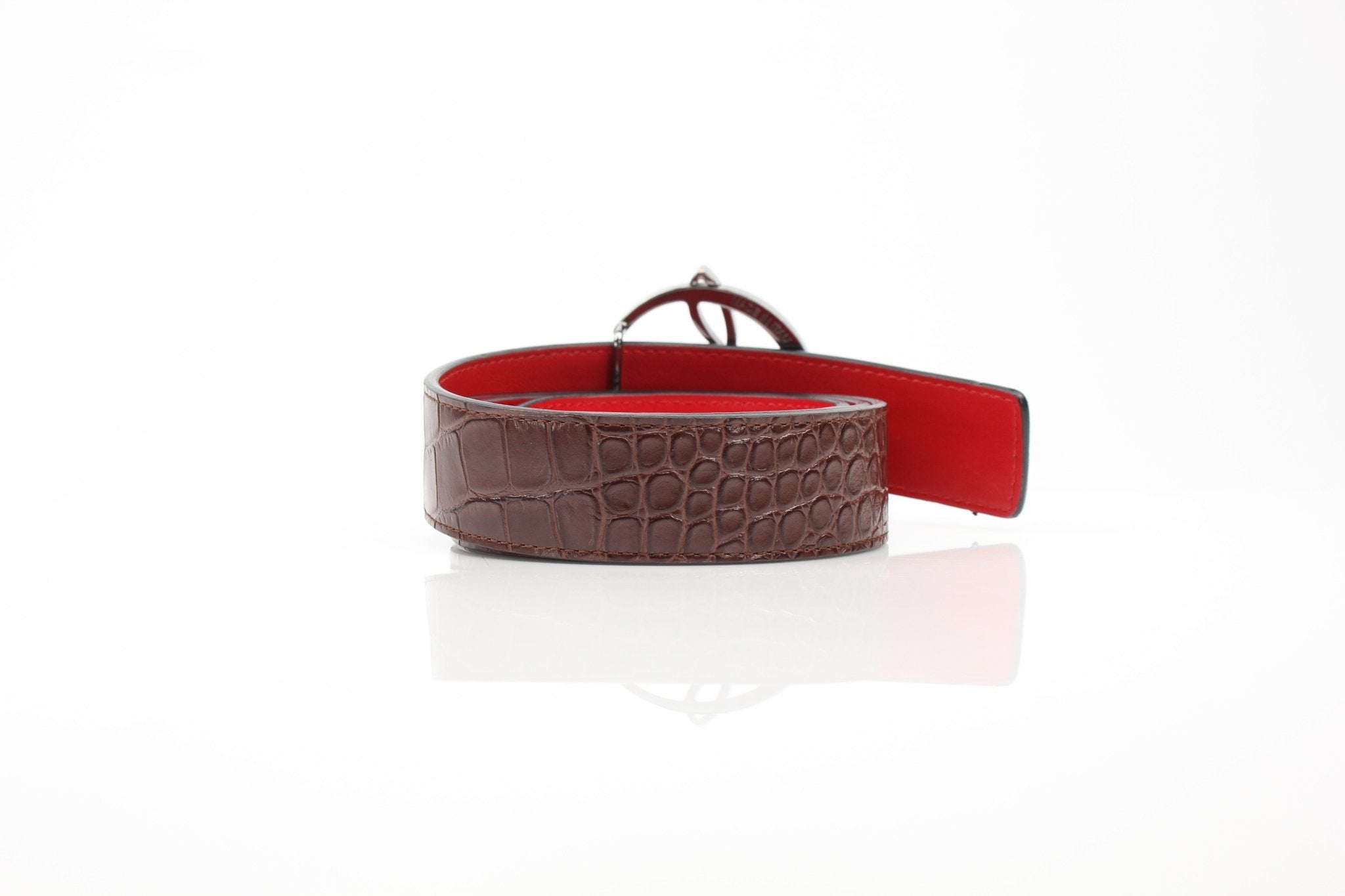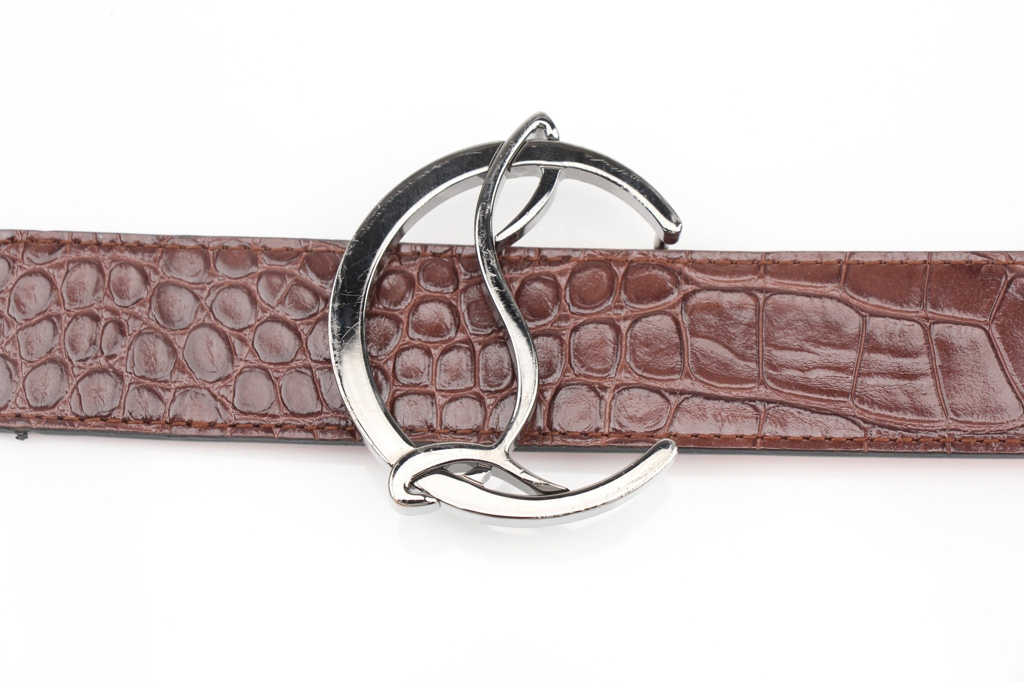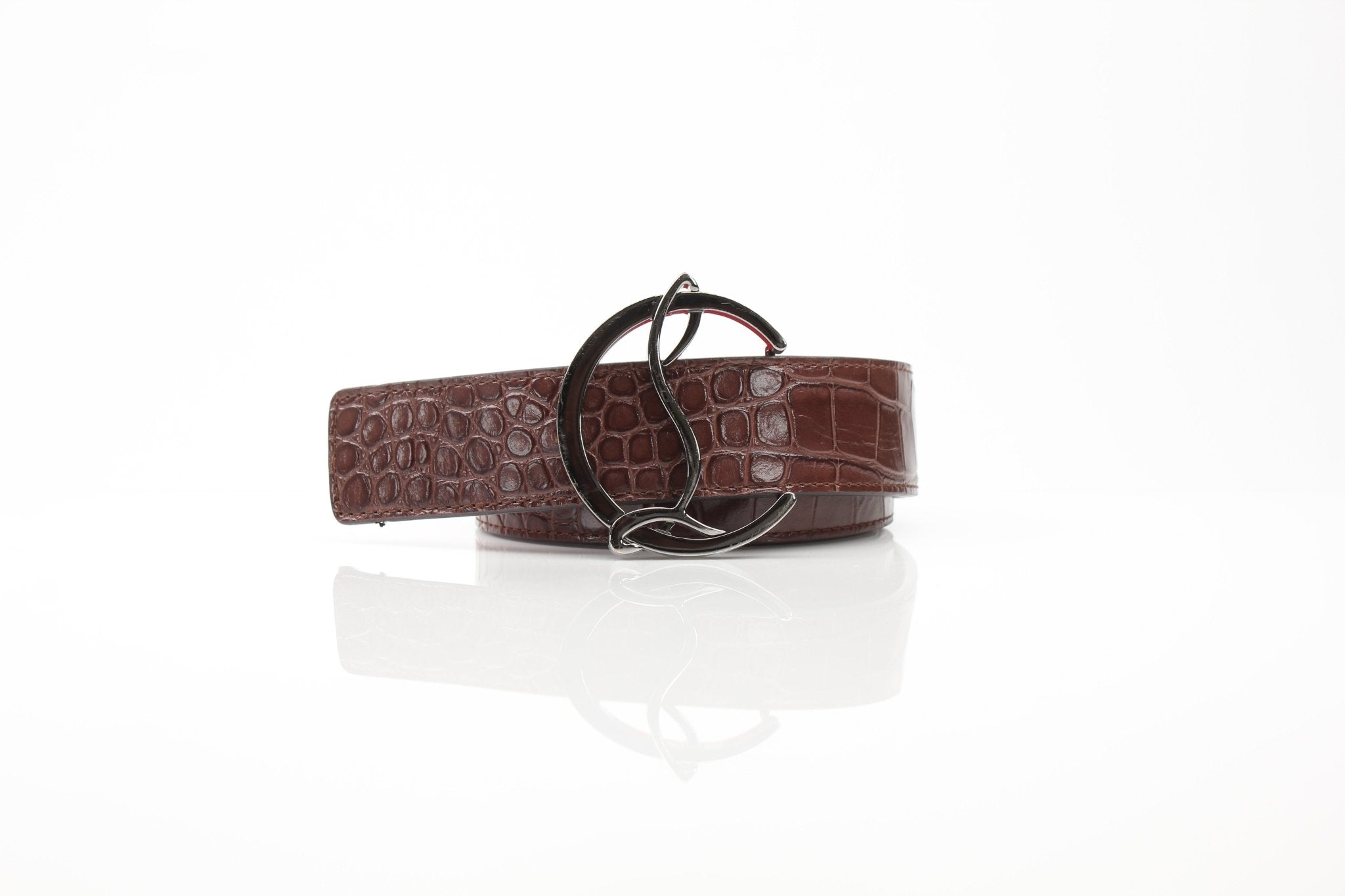 Christian Louboutin Croc-Embossed Leather Belt | Brown Leather | Size 90/36