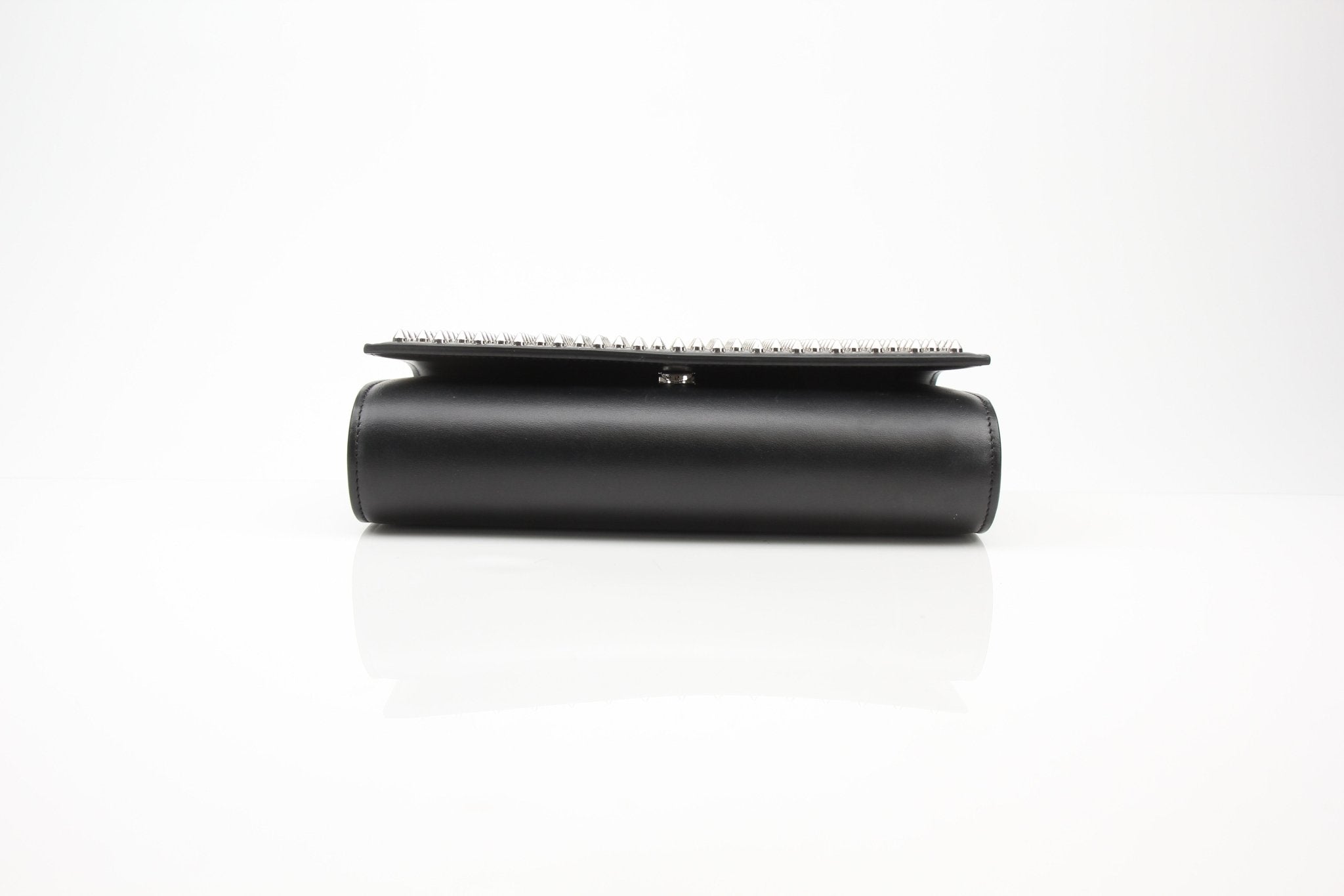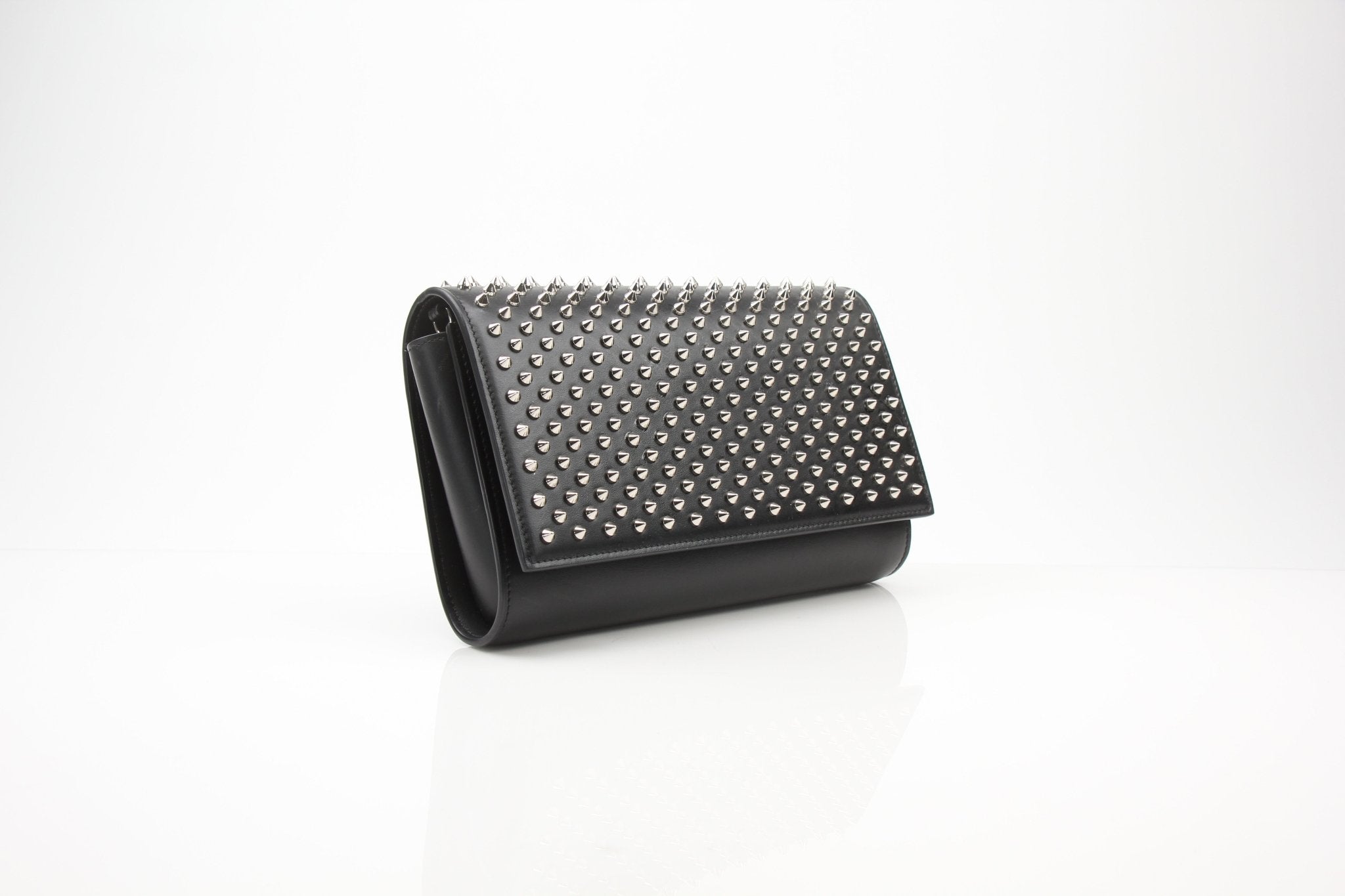 Christian Louboutin Studded Leather Clutch | Black Spike Flap Purse | Bag Only