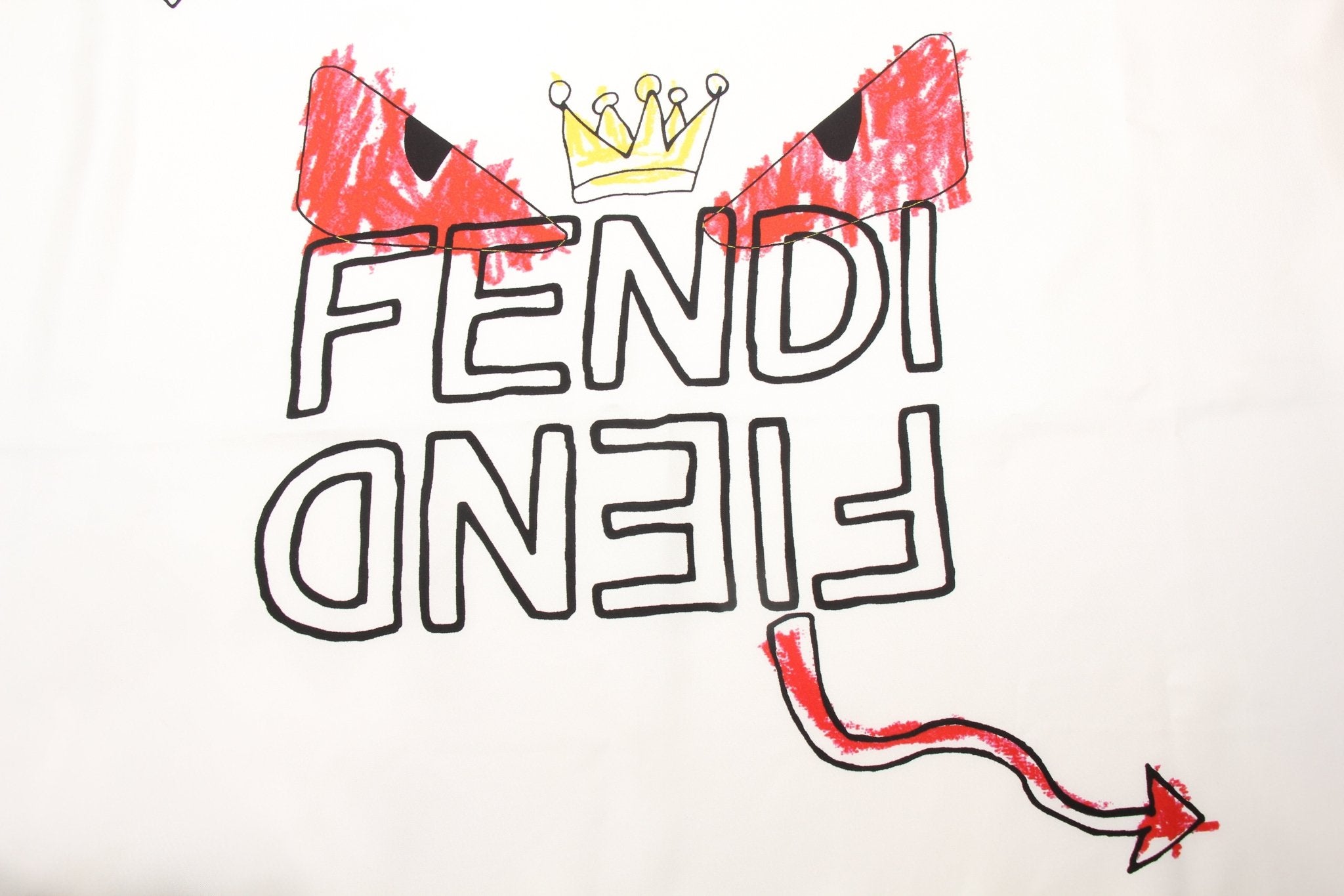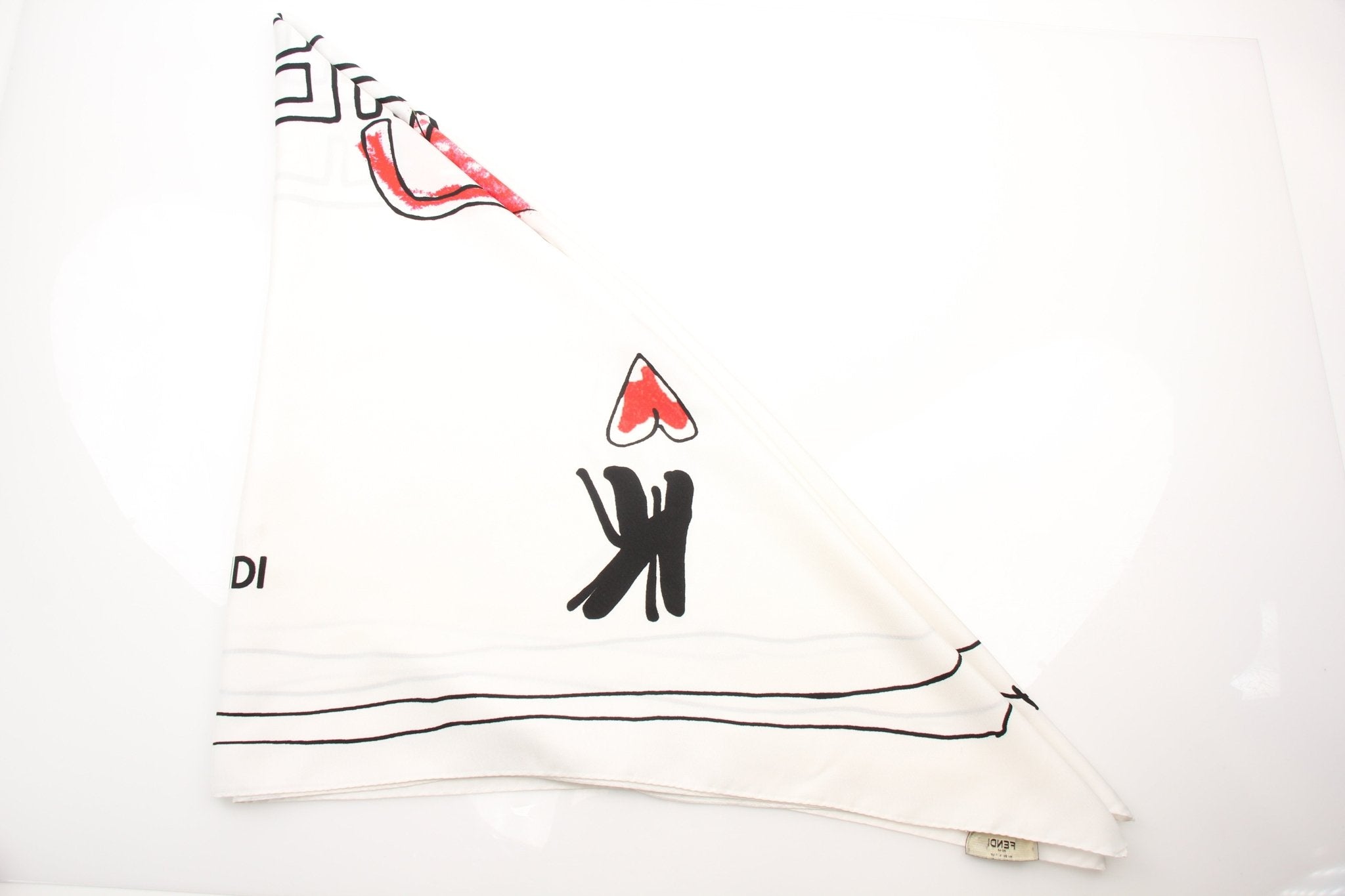 Fendi “King Demon” White Silk Scarf with Graphic Monster Motif – Roma Edition