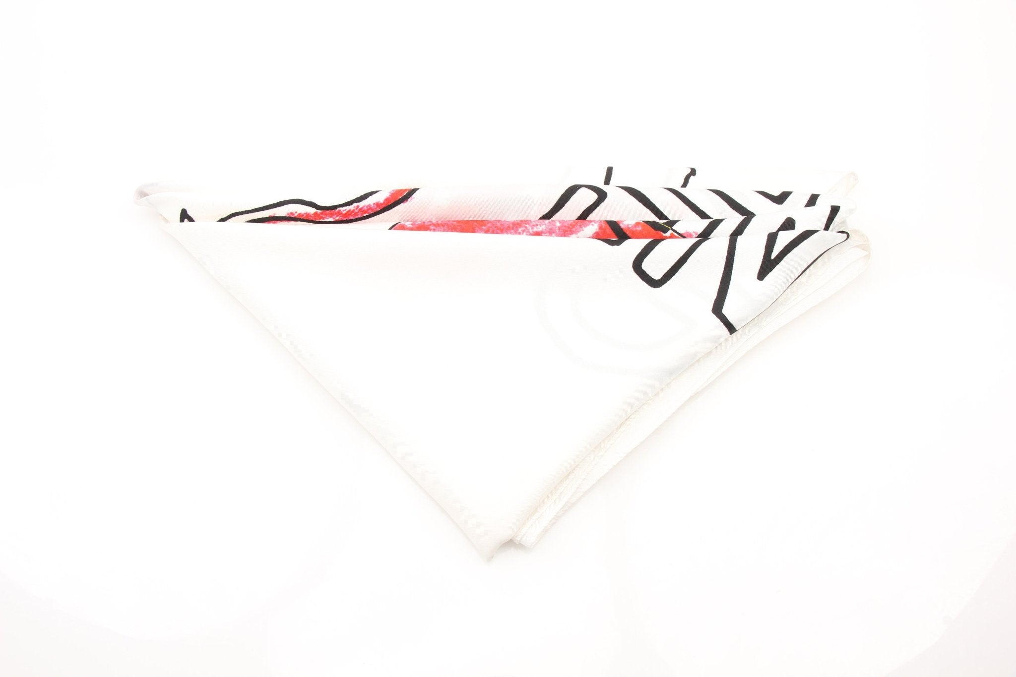 A bold expression of Fendi’s playful luxury, this “King Demon” scarf features the house’s iconic monster graphic in striking red and black against a crisp white backdrop. Accented with the FENDI ROMA logo and whimsical crown detailing, this statement piece blends artistic edge with unmistakable Italian craftsmanship. Lightweight and fluid, it can be styled effortlessly around the neck, over the shoulders, or tied to a handbag for a distinctive designer touch. Our detailed photography highlights the vibrancy of the print and the overall condition, allowing you to shop with complete confidence. As with every Gold & Beyond purchase, this piece includes complimentary shipping, handling, and full insurance.