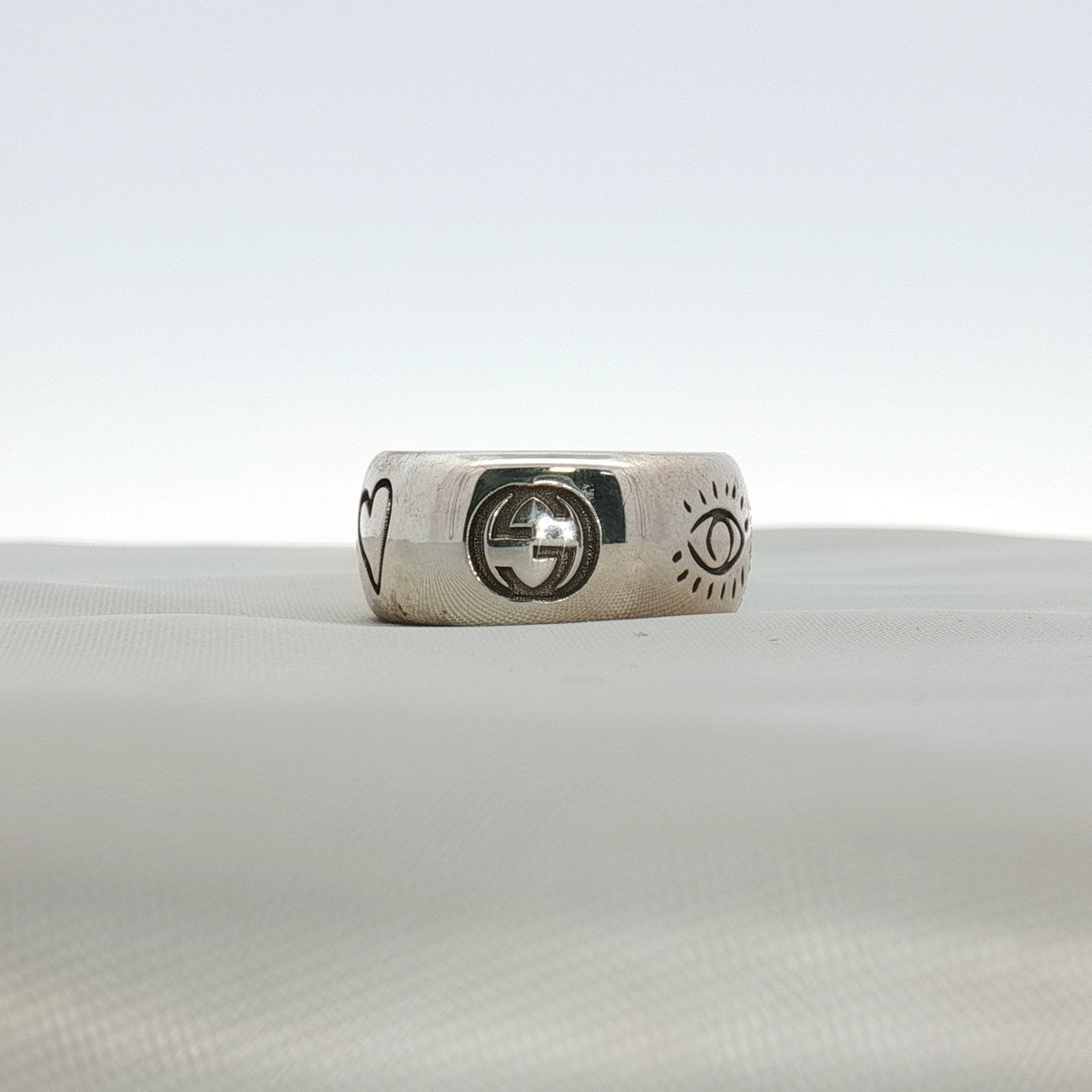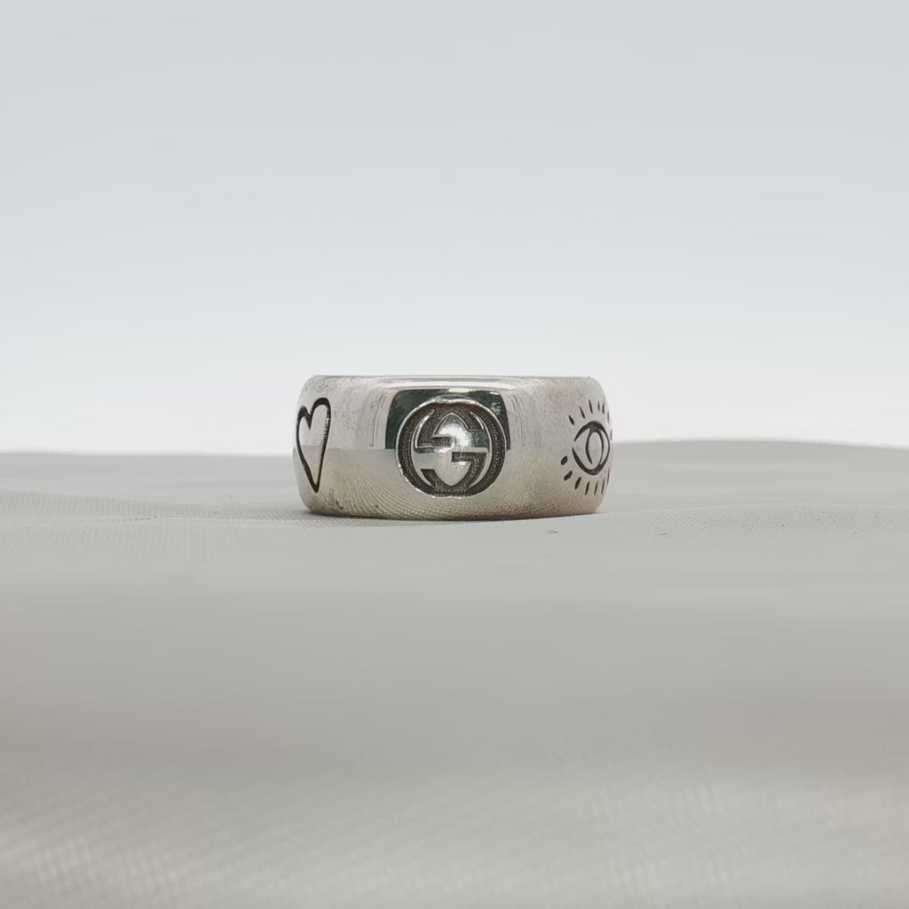 Gucci Blind for Love Sterling Silver Ring | Engraved Motif Band | Size 6