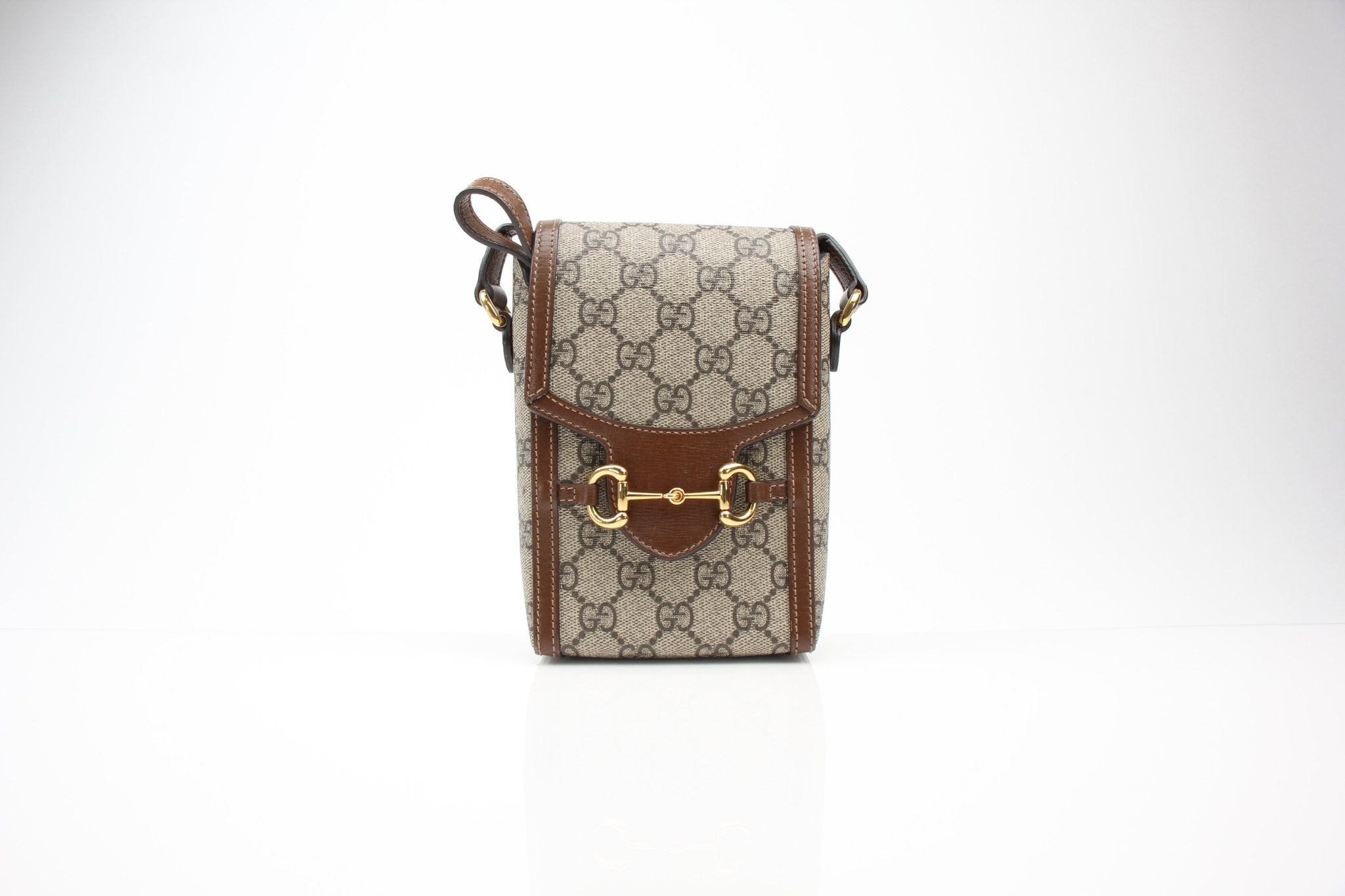 A refined expression of Gucci heritage, this elegant mini crossbody features the iconic GG Supreme canvas paired with rich brown leather trim and the brand’s signature Horsebit hardware. Compact yet sophisticated, it offers a timeless silhouette that transitions effortlessly from day to evening, allowing the craftsmanship and classic design to speak through the imagery.