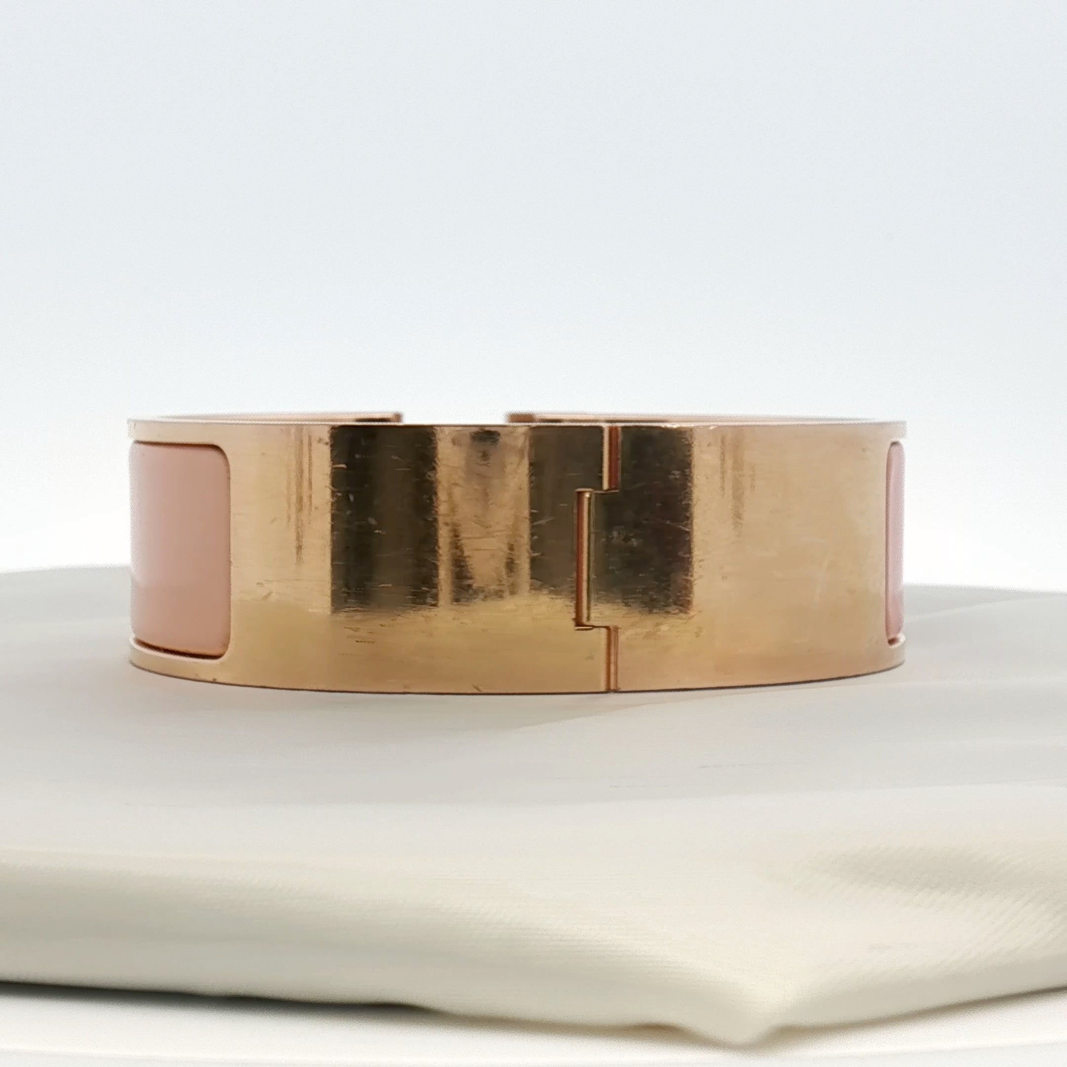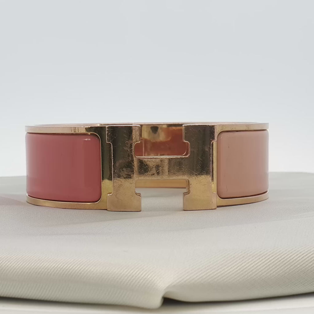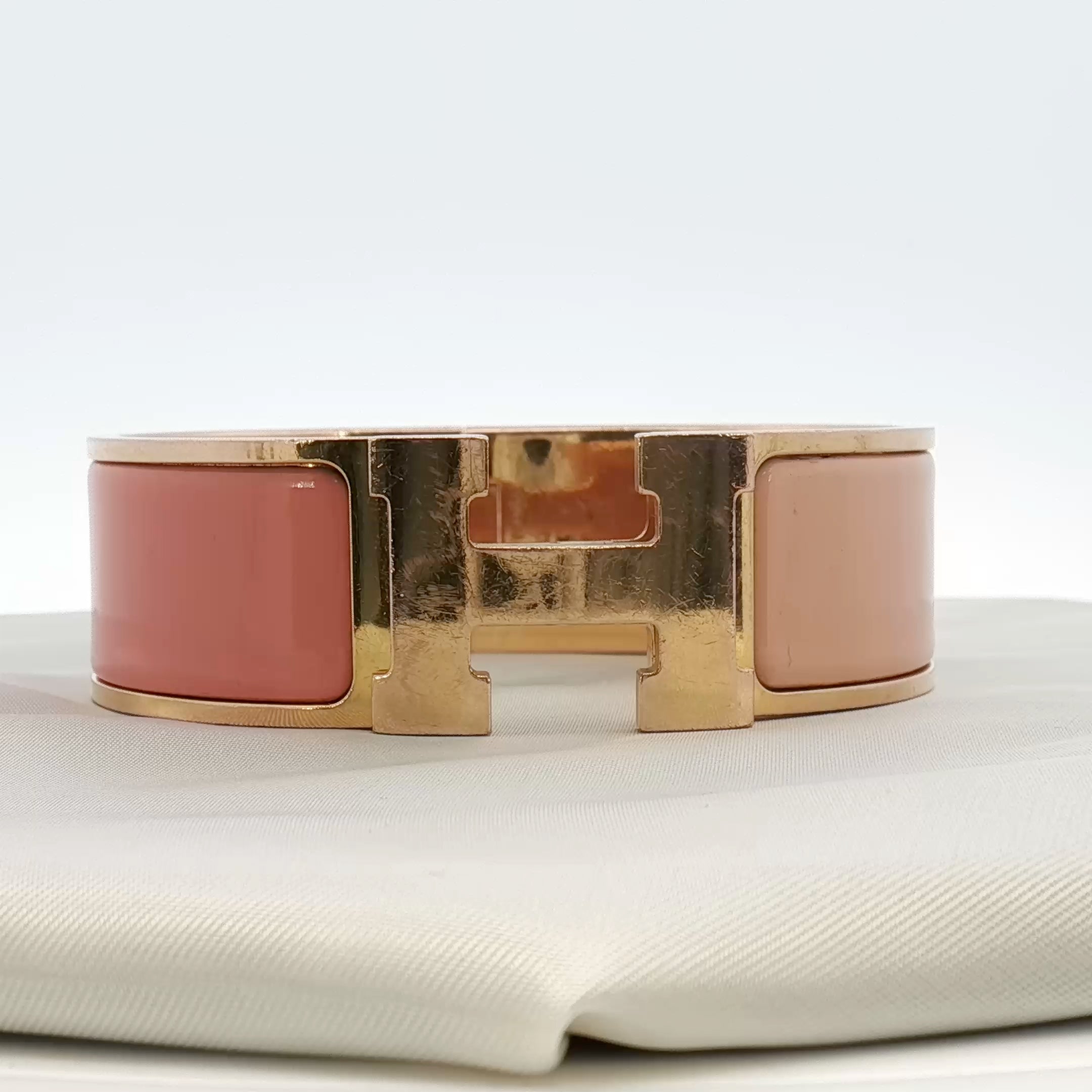 Hermès Wide H Bracelet in Peach Enamel and Yellow Gold Tone