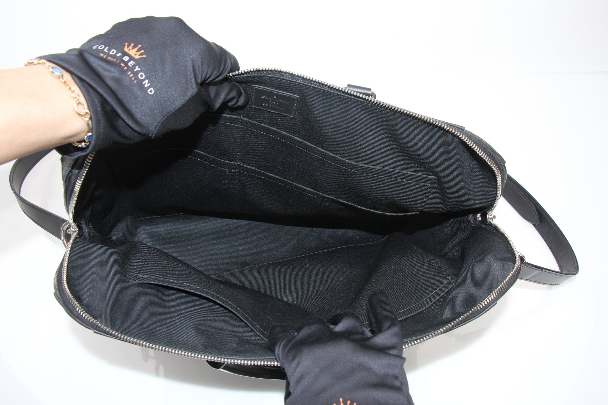 A sharp expression of modern professionalism, the Porte-Documents Voya is crafted in Louis Vuitton’s iconic Damier Graphite canvas, complemented by smooth black leather trim and polished silver-tone hardware. Its structured silhouette is enhanced by refined top handles and a detachable shoulder strap for versatile carry. The secure zip-top closure opens to a spacious, well-organized interior ideal for documents and daily essentials. The photos highlight its clean lines, signature detailing, and timeless executive appeal.