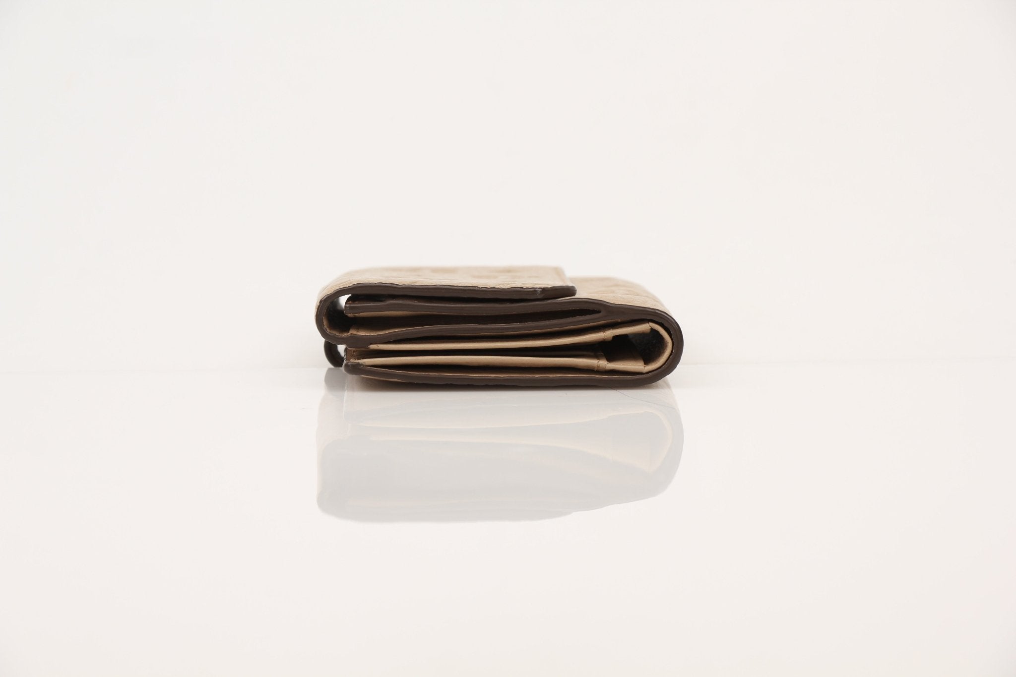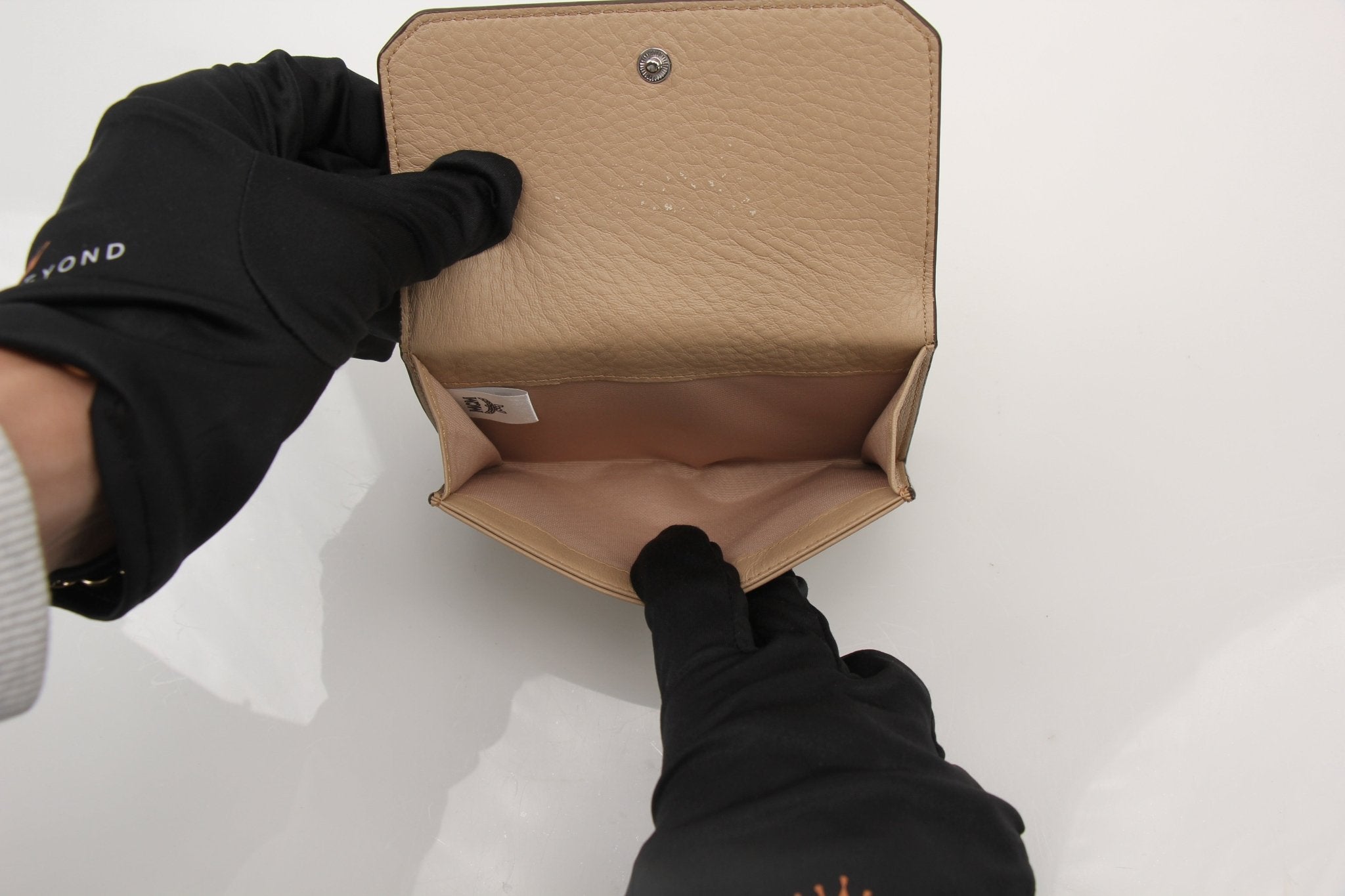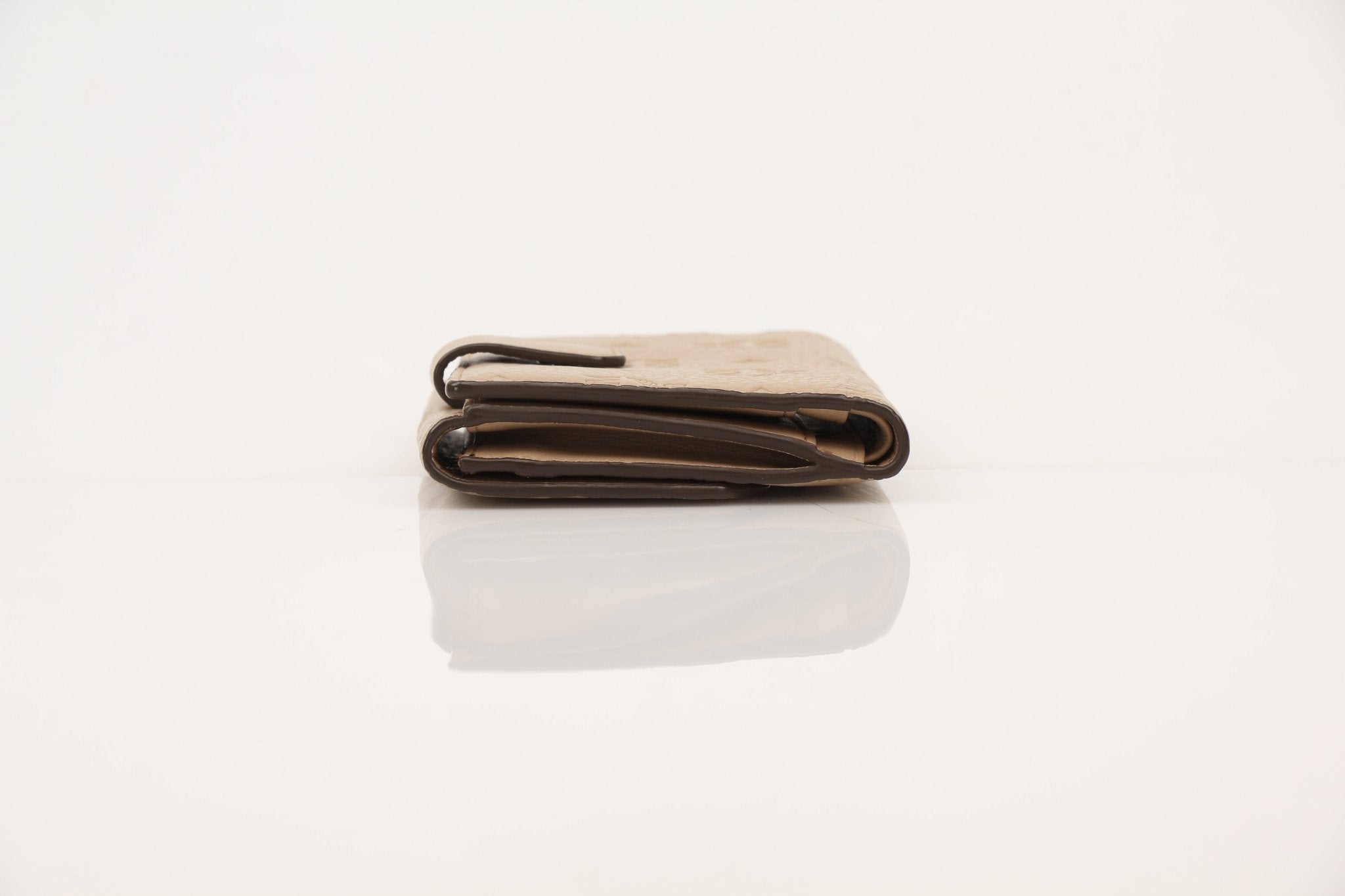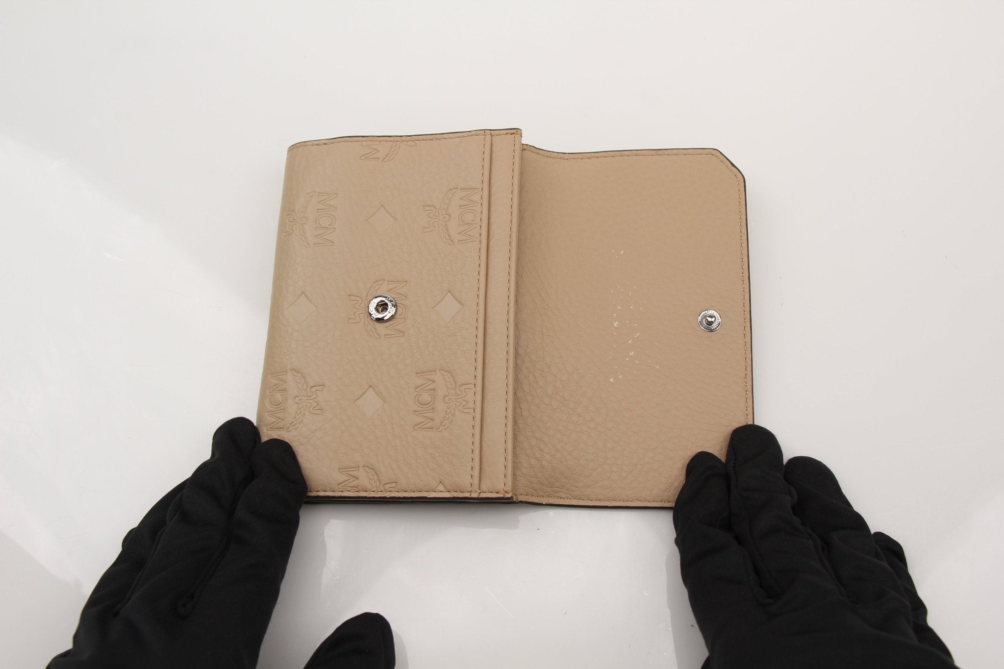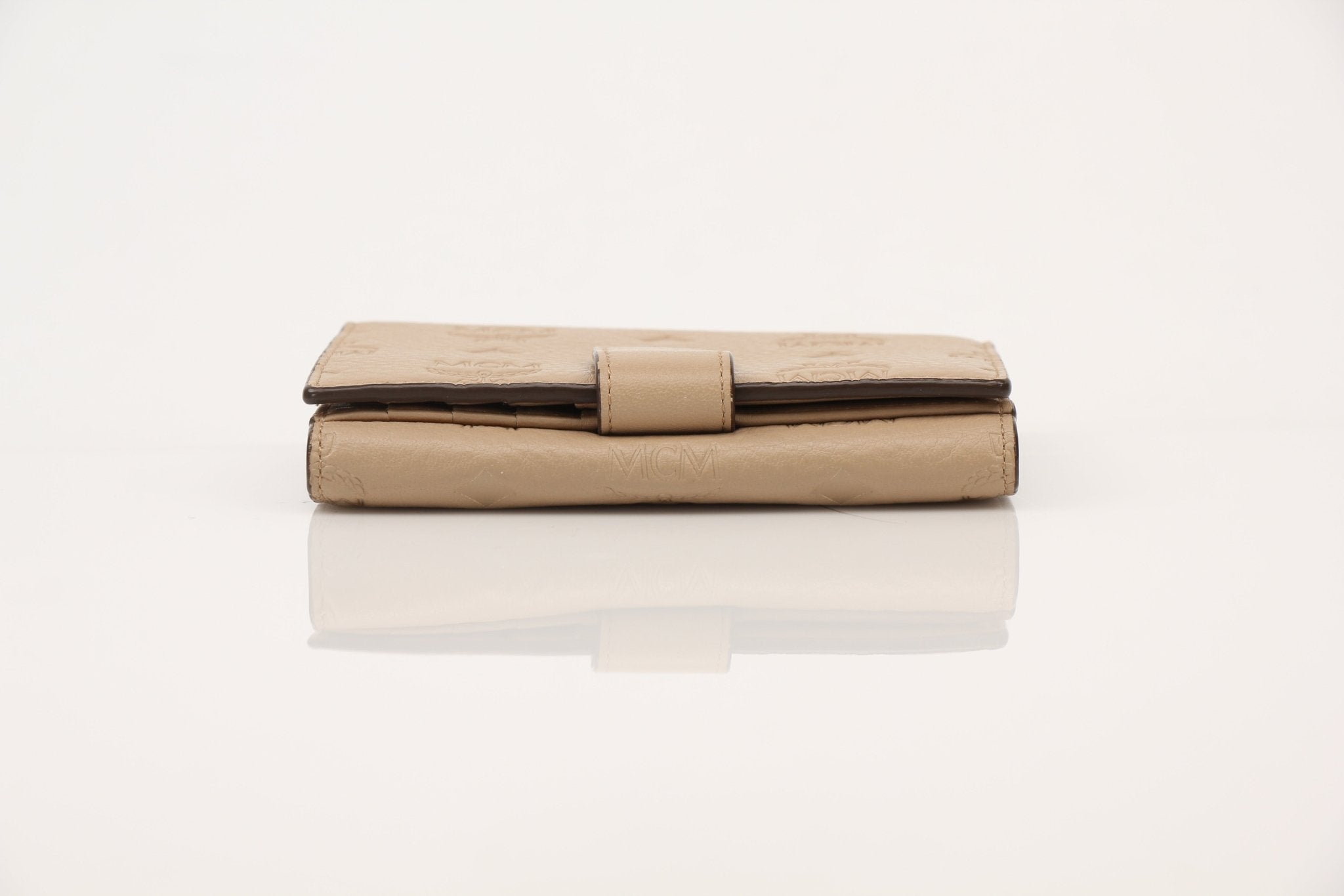 Crafted in soft, embossed leather, this MCM trifold wallet delivers refined everyday luxury in a compact silhouette. The iconic Visetos pattern subtly elevates the minimalist beige tone, while the structured design opens to practical compartments that keep essentials organized with ease. A polished, modern accessory for those who appreciate understated elegance.