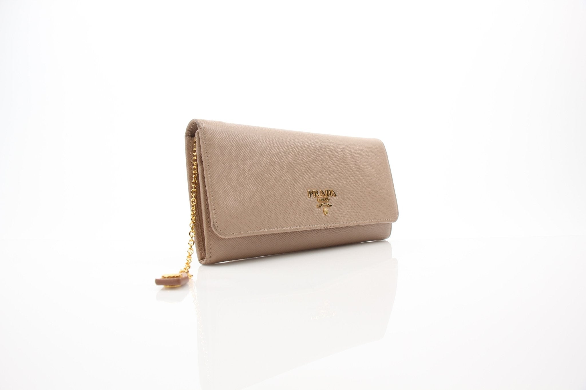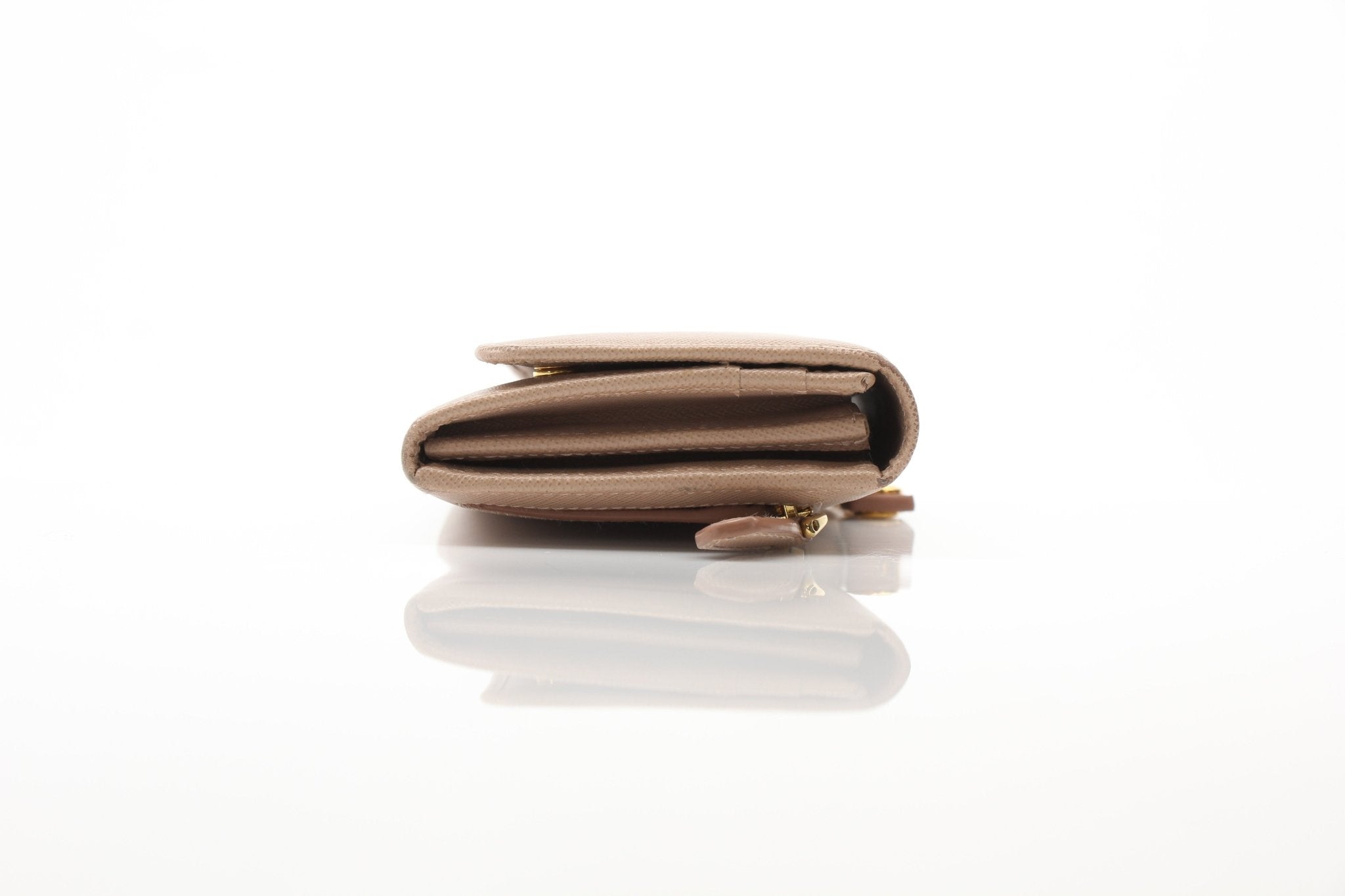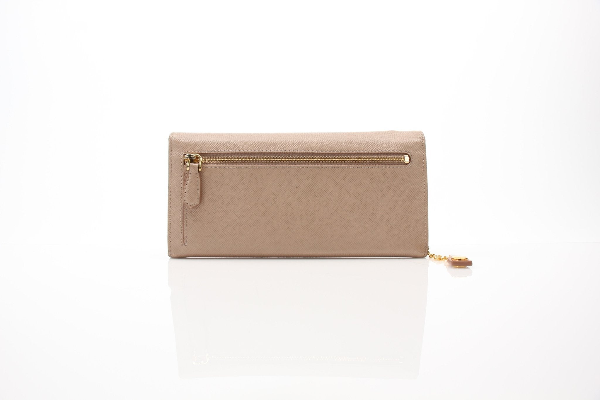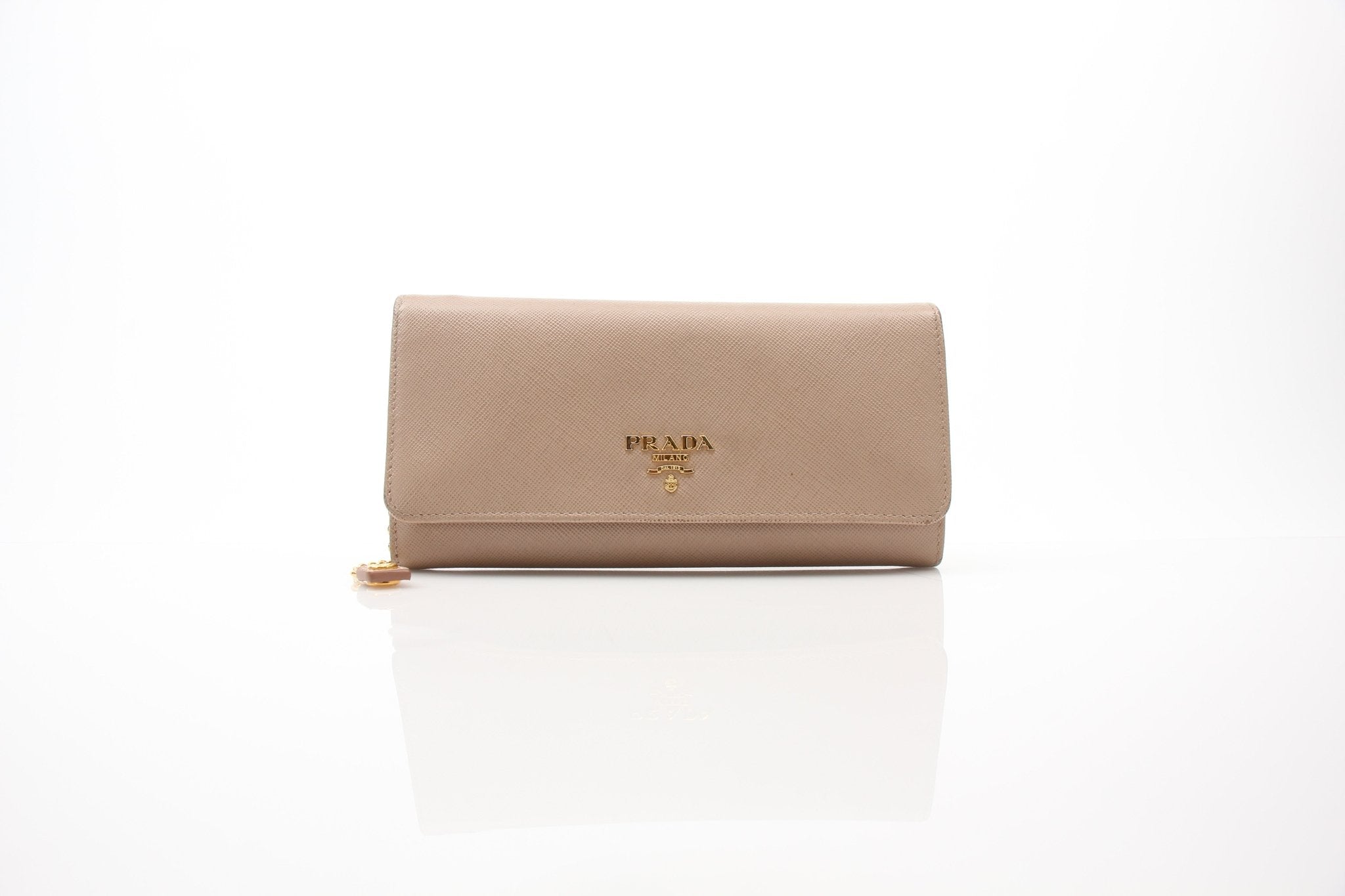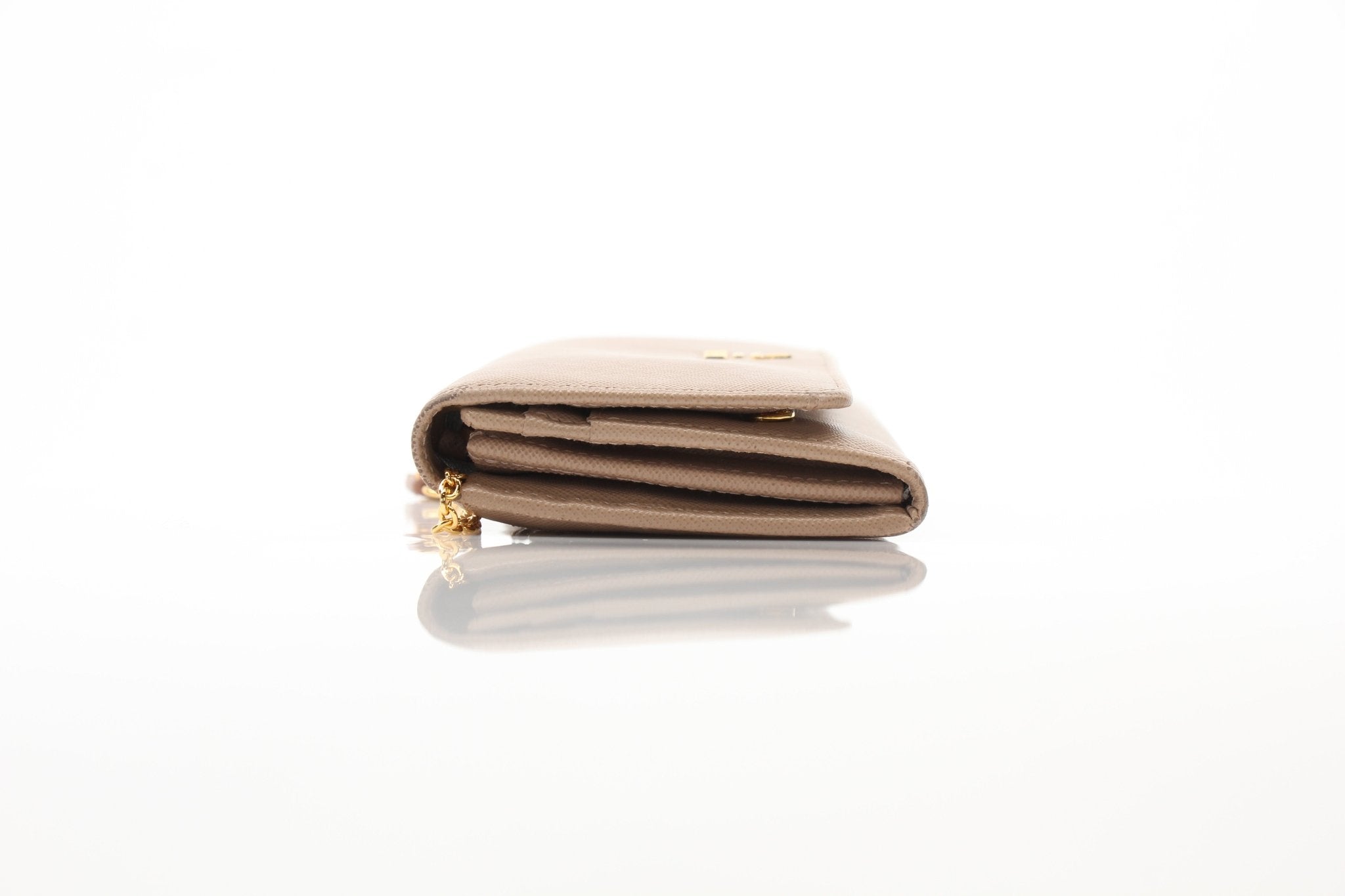 Prada Saffiano Lux Beige Continental Flap Wallet with Gold Hardware