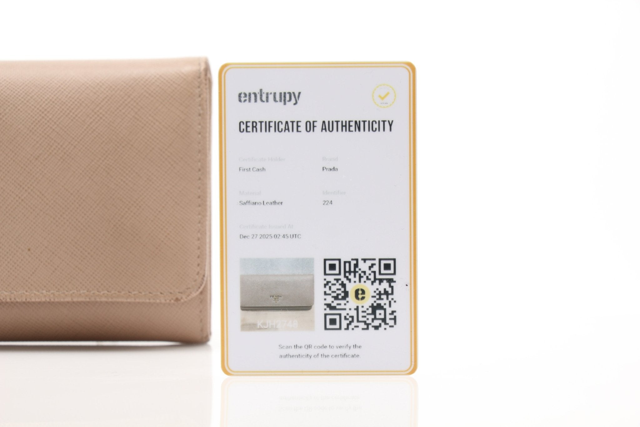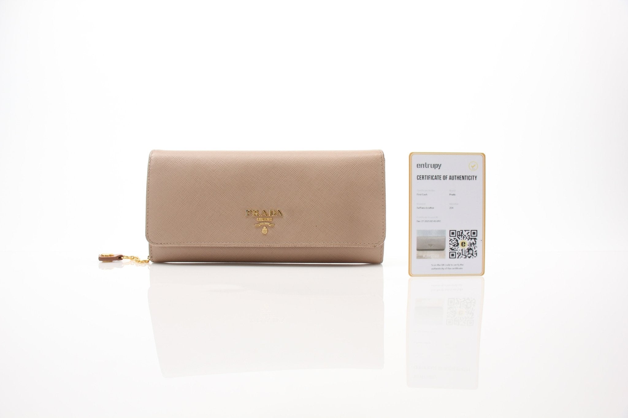 Refined and timeless, this Prada Saffiano Lux Continental Wallet in elegant beige is the embodiment of understated luxury. Crafted from Prada’s signature crosshatch Saffiano leather and finished with gold-tone hardware, this piece offers both durability and sophistication in a beautifully structured silhouette. The interior reveals a thoughtfully designed layout with multiple card slots, compartments, and a secure zip pocket for effortless organization. A versatile and polished essential, perfect for elevating everyday carry.