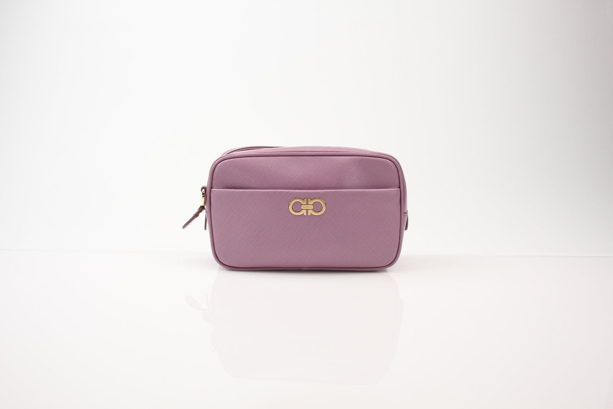 Crafted in elegant pink textured leather, this Salvatore Ferragamo Gancini bag embodies timeless Italian sophistication with a modern, feminine edge. The structured silhouette is complemented by polished gold-tone Gancini hardware, creating a refined statement piece that transitions effortlessly from day to evening. Its compact yet functional design makes it ideal for carrying essentials in elevated style.